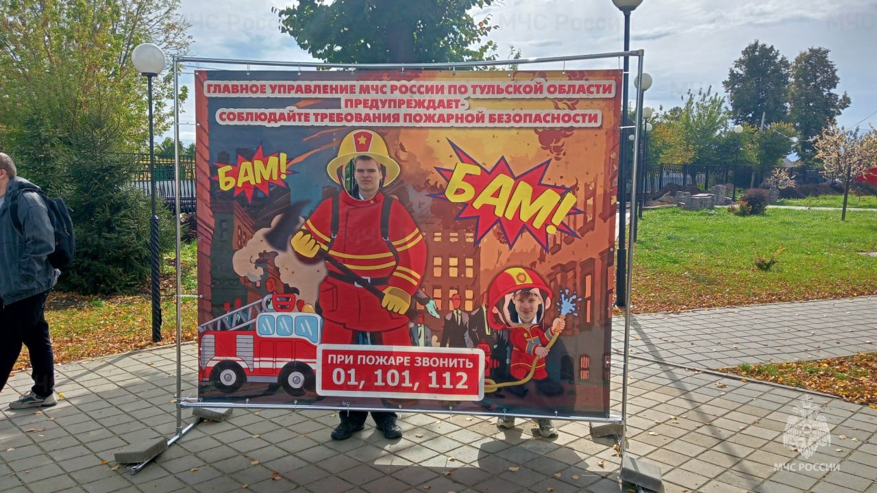 смогли сделать памятные кадры на фотозоне и с с маскотом МЧС России по Тульской области тульским пряником-спасателем;