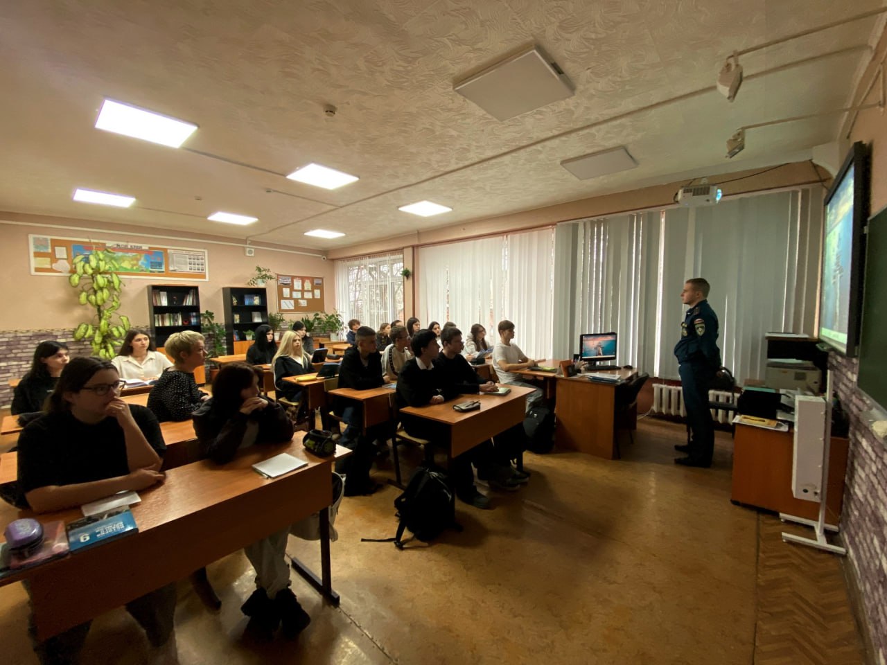 На занятиях в детских садах и школах спасатели напомнили подрастающему поколению правила пожарной безопасности не только в образовательном учреждении, но и на улице, и дома. Ребята узнали о том, что делать при пожаре и возникновении чрезвычайных ситуаций, не только из рассказов специалистов спасательного ведомства, но и посмотрев видеоролики на противопожарную тематику.