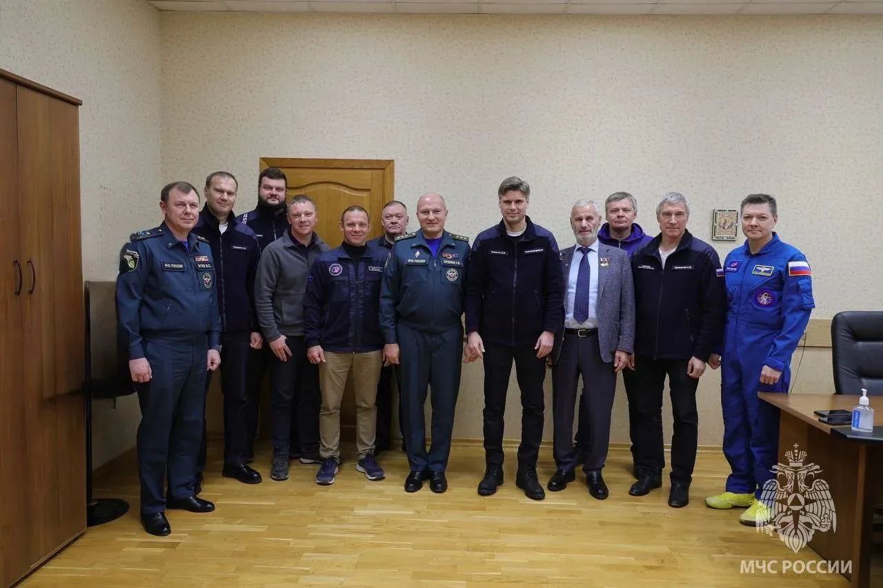Первые лица ведомства Александр Куренков и Роскосмоса Дмитрий Баканов поздравили совместный расчет МЧС России и госкорпорации с успешным запуском, вручив ведомственные награды сотрудникам.
