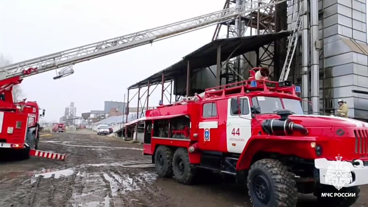 В Арсеньево огнеборцы потушили пожар в зерносушилке