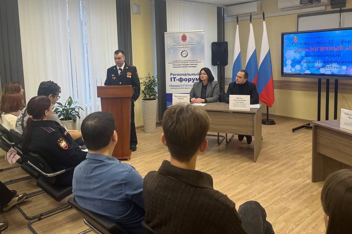 В Тульском государственном технологическом колледже состоялся региональный IT-форум «ТехноЛОГИЧНЫЙ «Я», приуроченный к Дню защиты информации. Мероприятие собрало школьников, студентов и педагогов из образовательных учреждений Тульской области.