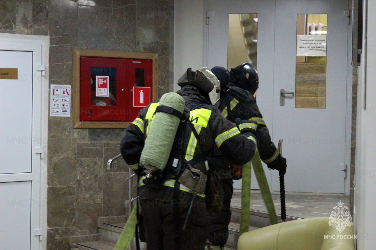 Сотрудники МЧС России «спасли пострадавшую» во время тренировочной эвакуации в Тульском кардиологическом диспансере