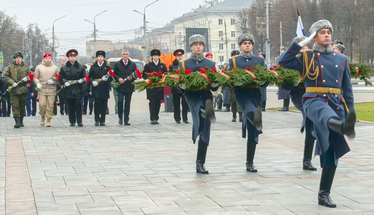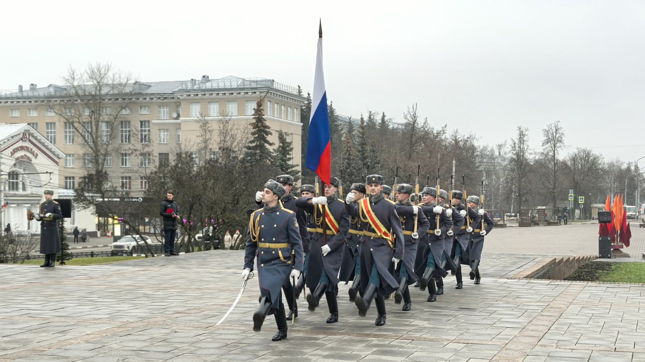 На площади Победы в Туле состоялась церемония возложения гирлянды и цветов, приуроченная ко Дню обороны Тулы.