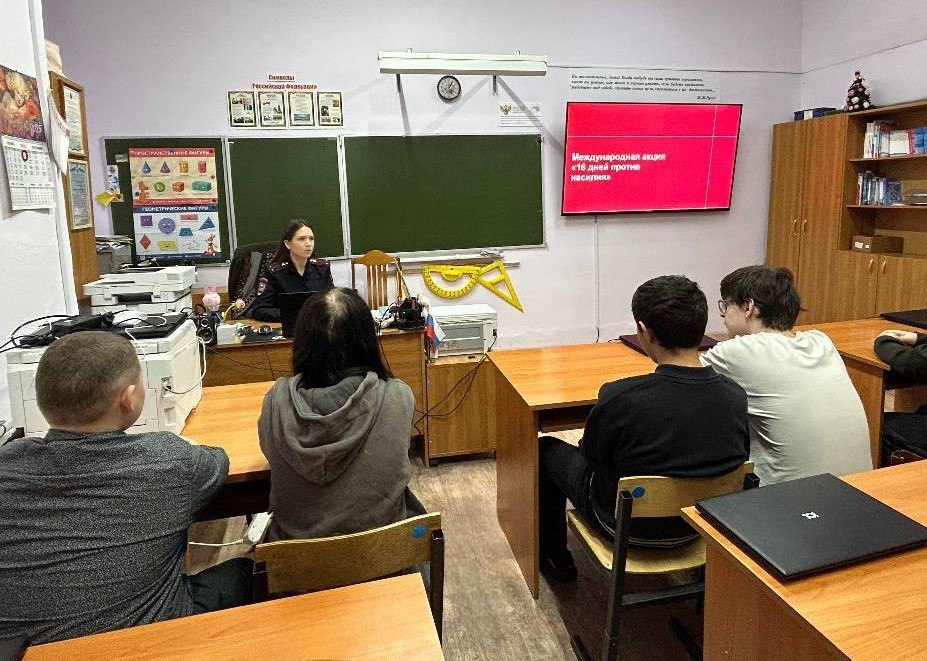 В Дудкинской средней общеобразовательной школы Кимовского района прошла профилактическая беседа с инспектором отделения по делам несовершеннолетних МО МВД России «Кимовский» Елизаветой Мишиной. Мероприятие было приурочено к международной акции «16 дней против насилия». Инициатива направлена на повышение осведомленности о проблеме насилия и защиту прав детей.