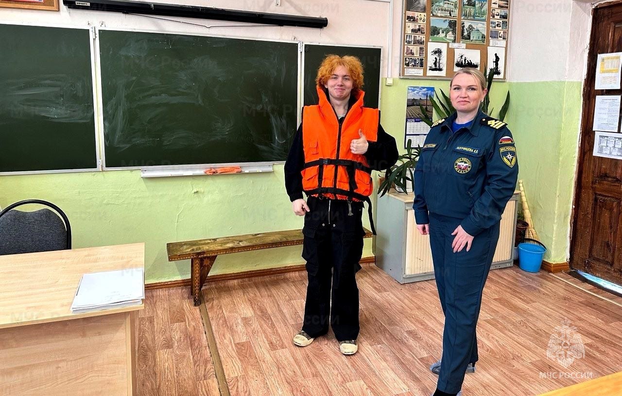 Вместе с этим сотрудники МЧС России рассказали детям о средствах для оказания помощи попавшему в беду: спасательном конце Александрова и спасательном круге, а также о пользе спасательного жилета.