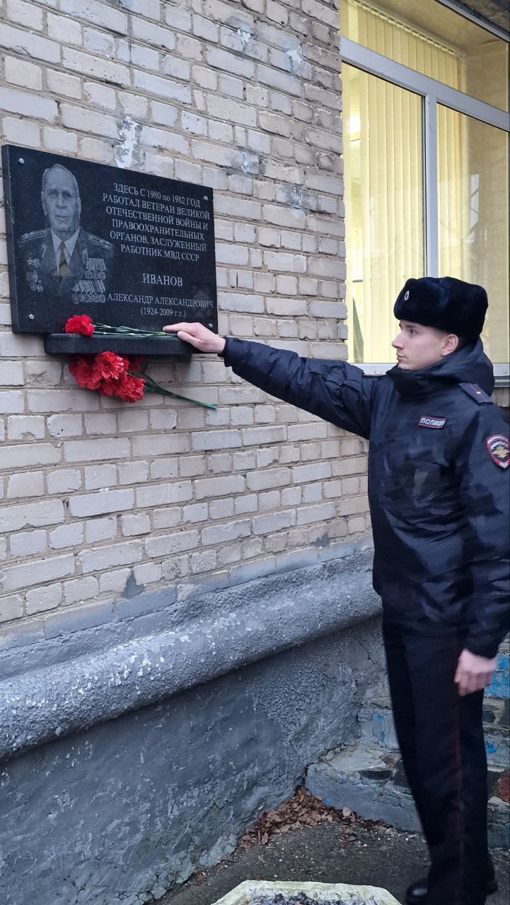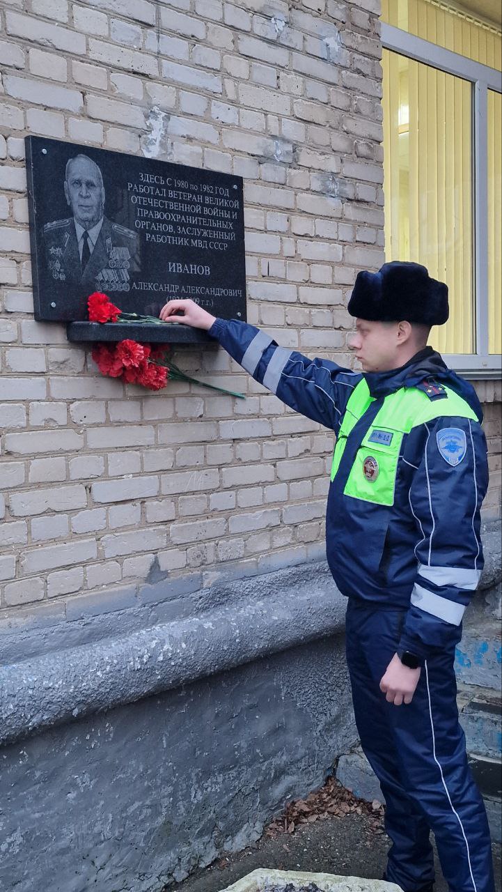 К мемориальной доске ветерана Великой Отечественной войны, заслуженного работника МВД СССР, заместителя начальника Тульского учебного центра УВД Тульской области Александра Иванова были возложены цветы.