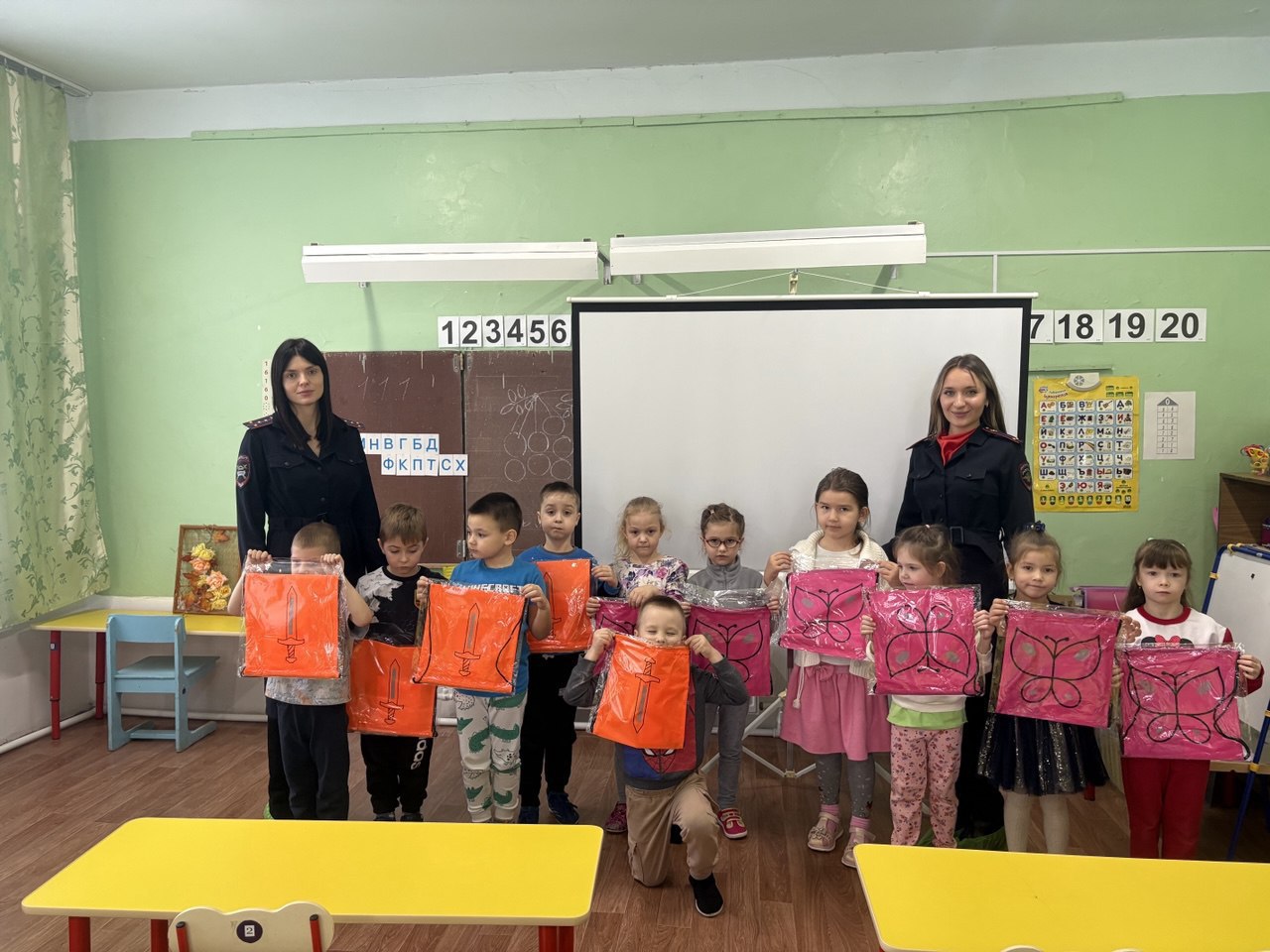 В завершении мероприятия инспекторы подарили детям полезную продукцию: световозвращающие брелоки, мешки и тетради, а также актуализировали уголки безопасности образовательных учреждений.