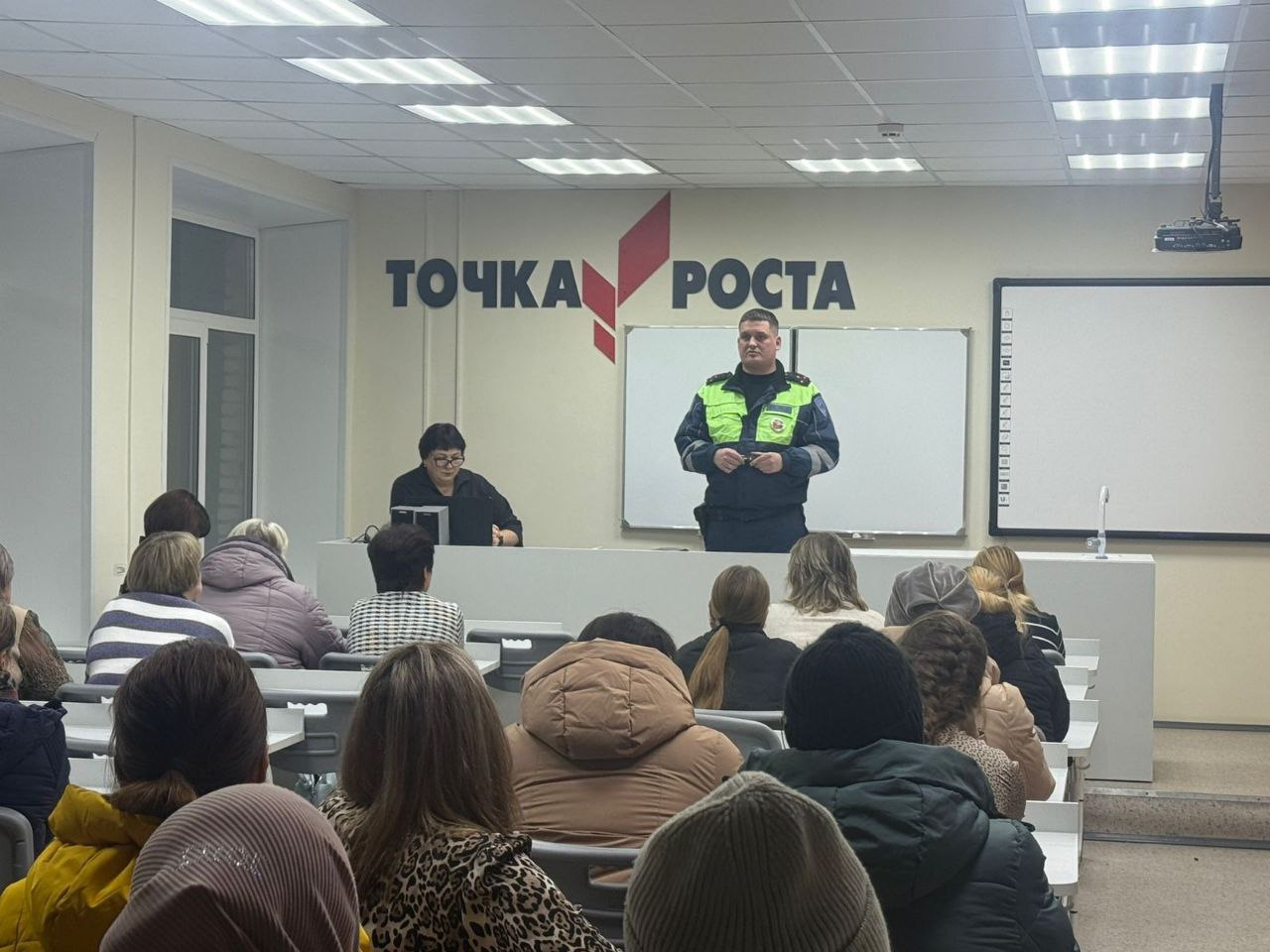 Встретившись с родителями школьников, автоинспекторы напомнили о важности родительского контроля за детьми в период предстоящих зимних каникул.