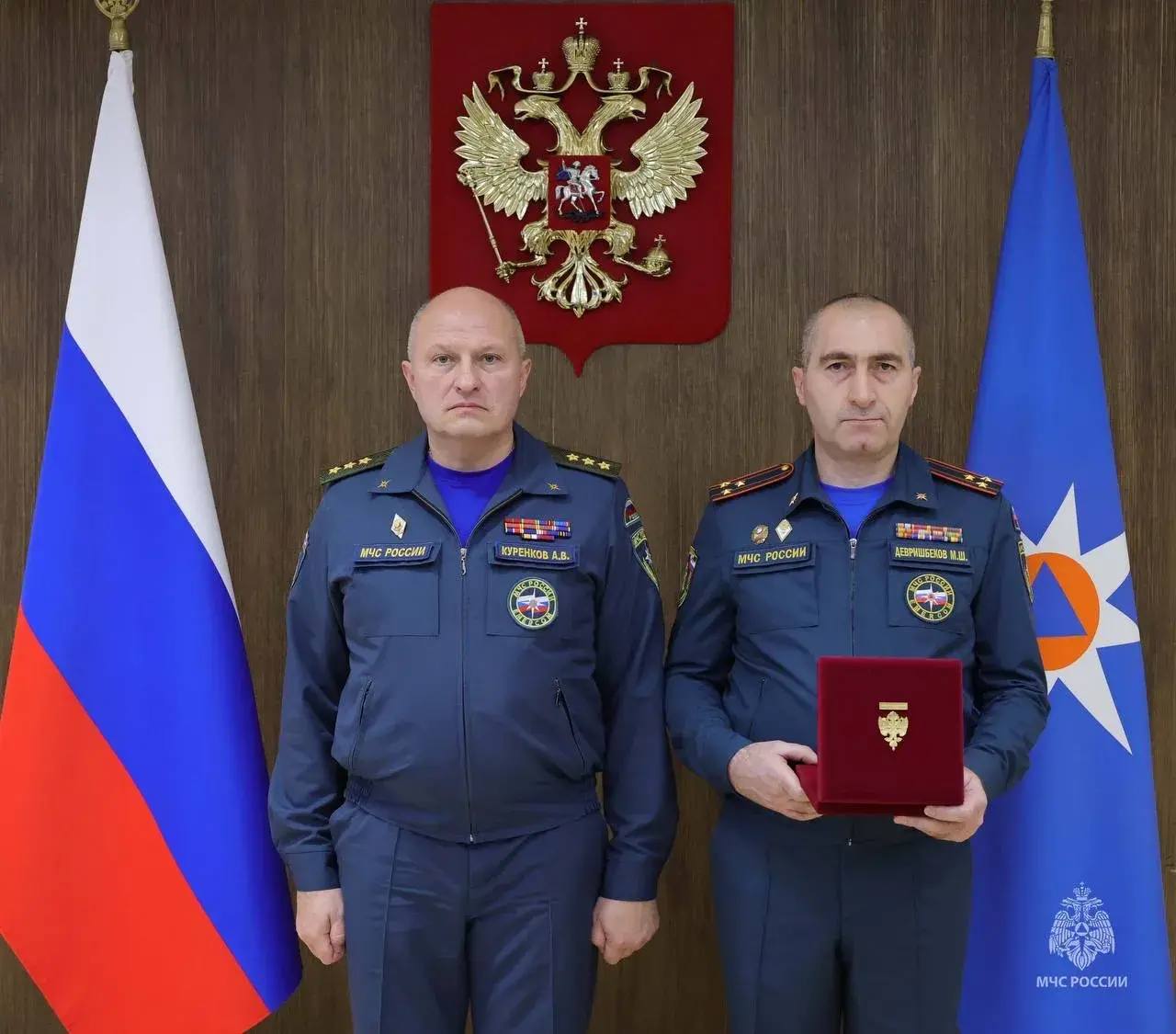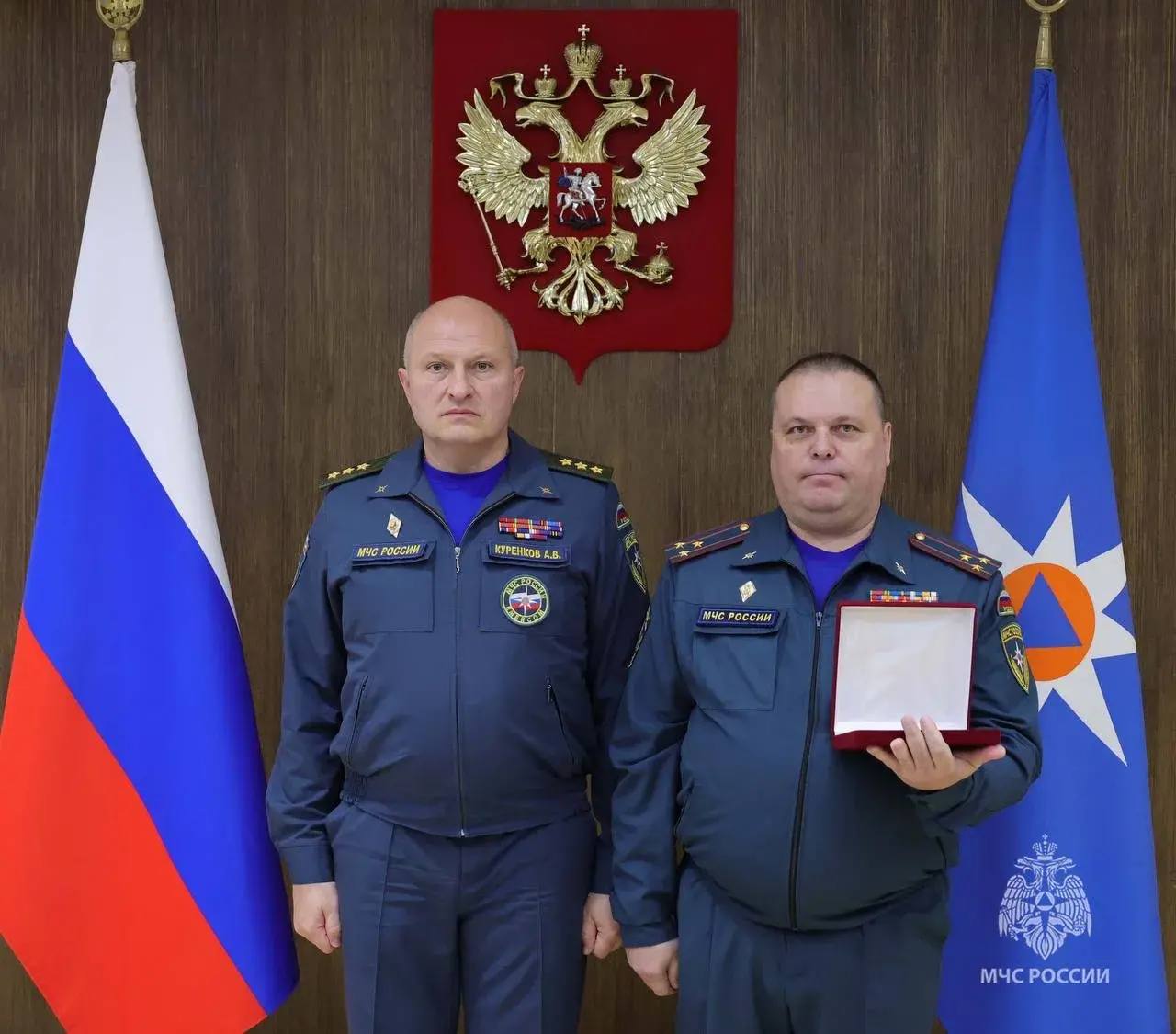 Глава ведомства Александр Куренков поблагодарил каждого за многолетнюю и ответственную службу, нацелив на эффективное решение поставленных государством задач и принятие взвешенных управленческих решений по защите населения и территорий от природных и техногенных опасностей.