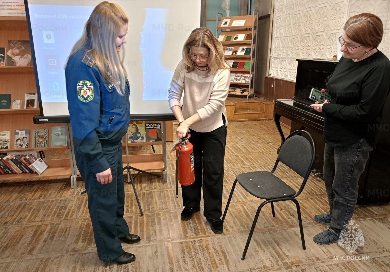 Безопасность читателей и сотрудников библиотеки тоже не осталась без внимания инспекторов государственного пожарного надзора. Они напомнили библиотекарям об основных правилах пожарной безопасности при обращении с электроприборами, использования огнетушителя и о своевременном оповещении службы пожарной охраны при обнаружении задымления или возгорания. Хранители литературы узнали, что в случае пожара важно сохранять спокойствие, не паниковать и быстро действовать по установленной инструкции. Спасатели объяснили всем присутствующим, что правильное и своевременное использование первичного средства пожаротушения может спасти жизнь и предотвратить распространение огня.