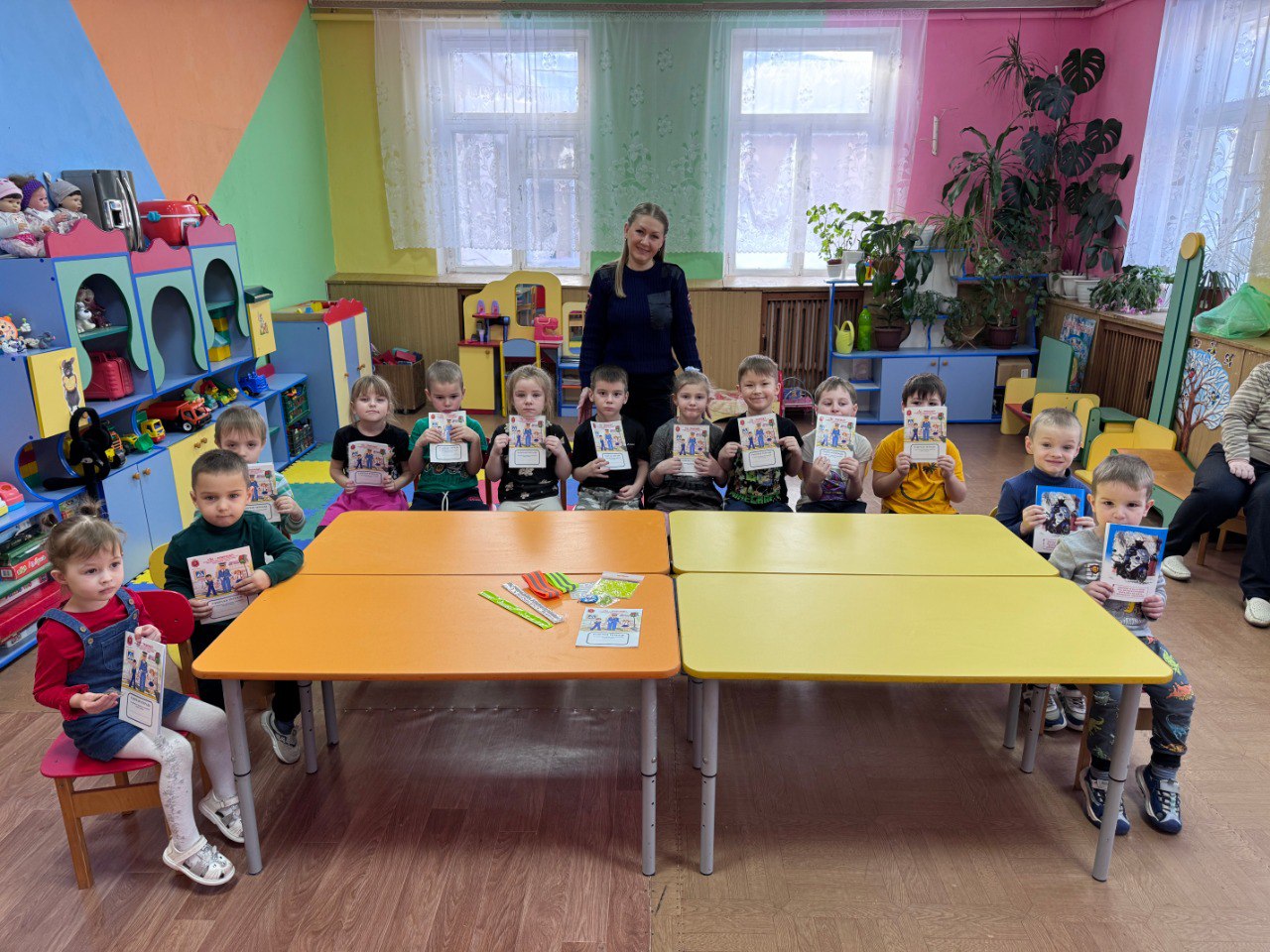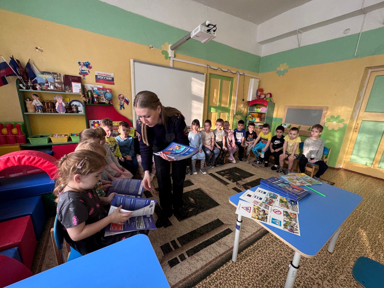 В завершении мероприятия Госавтоинспектор вручила иллюстрированные правилами дорожной безопасности рабочие тетради и манжеты, со световозвращающими элементами, изготовленные в рамках федерального проекта «Безопасность дорожного движения» национального проекта «Инфраструктура для жизни».