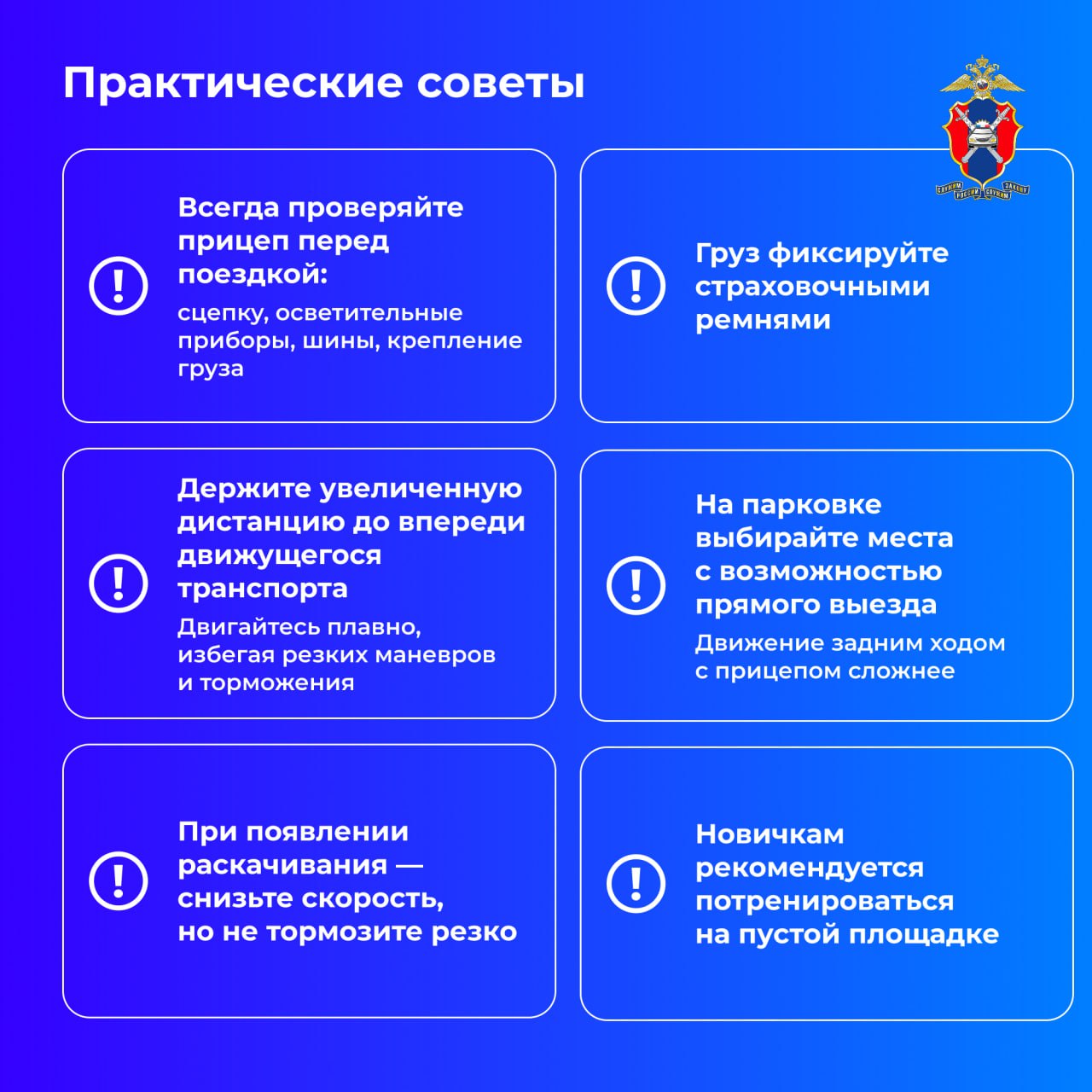 Главные факторы безопасной поездки грамотное распределение веса груза и владение техникой управления транспортным средством с прицепом.