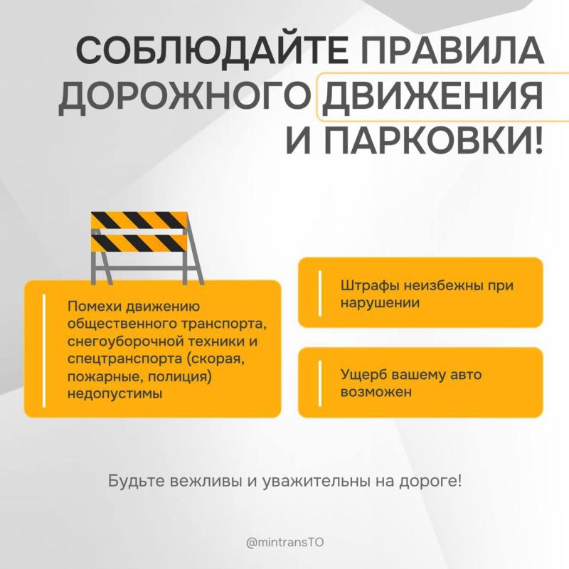 Друзья! Сейчас на улицах нашего региона кипит важнейшая работа — коммунальные службы расчищают дороги и тротуары от снега. Мы просим вас соблюдать правила дорожного движении и, что особенно важно, правила парковки!
