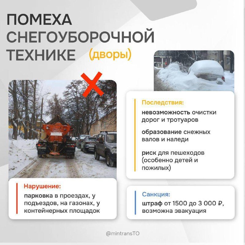 Машина, оставленная в неположенном месте, — это не просто штраф для водителя. Это прямая помеха снегоуборочной технике, из-за которой во дворах и на улицах образуются снежные валы и наледь.