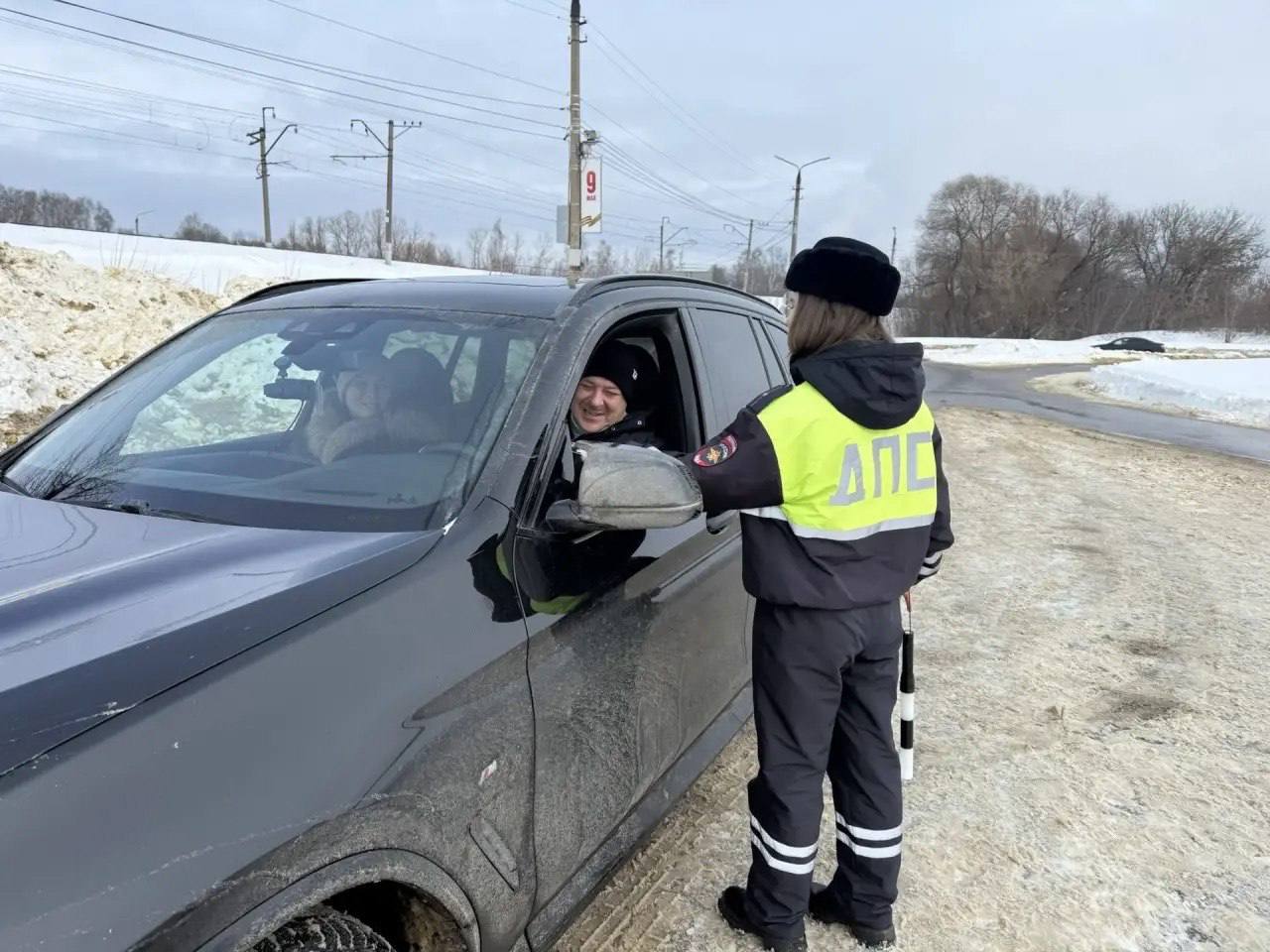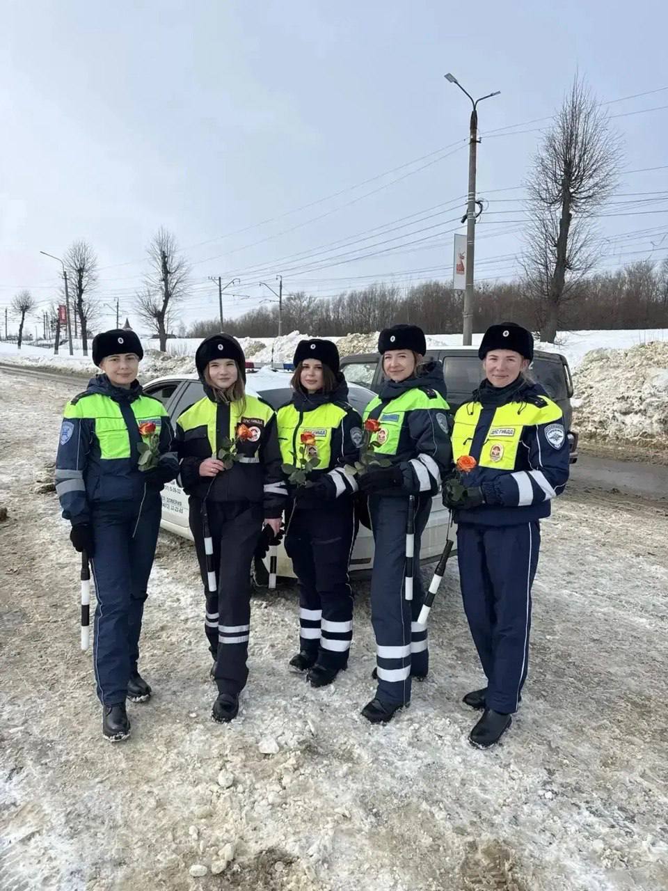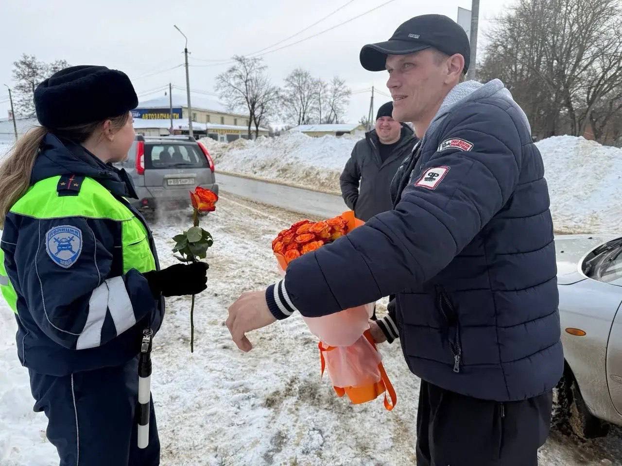Женский экипаж Госавтоинспекции Тульской области поздравили мужчин-водителей с Днём защитника Отечества