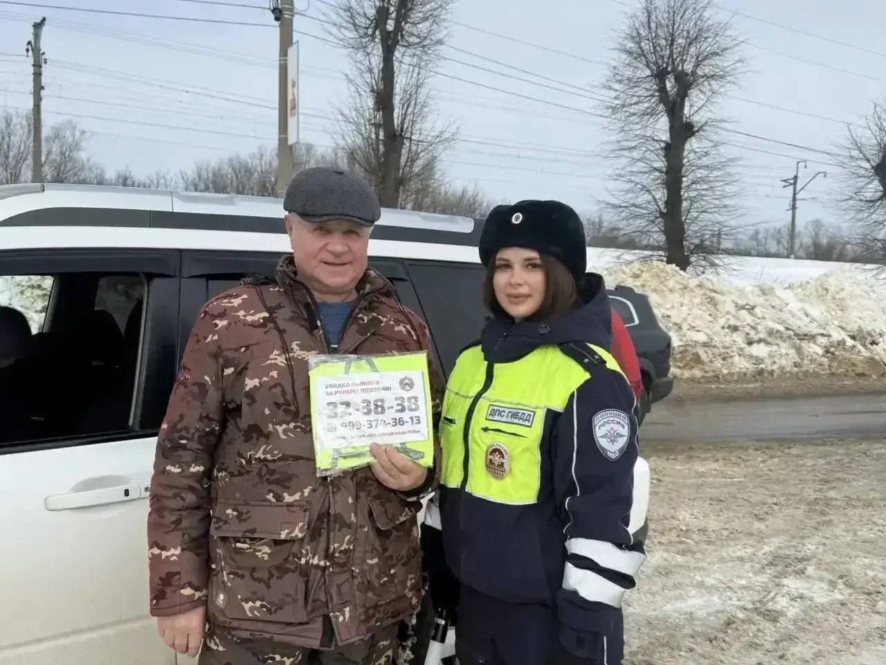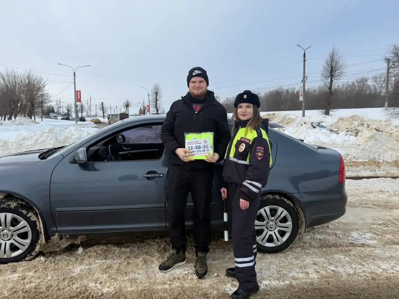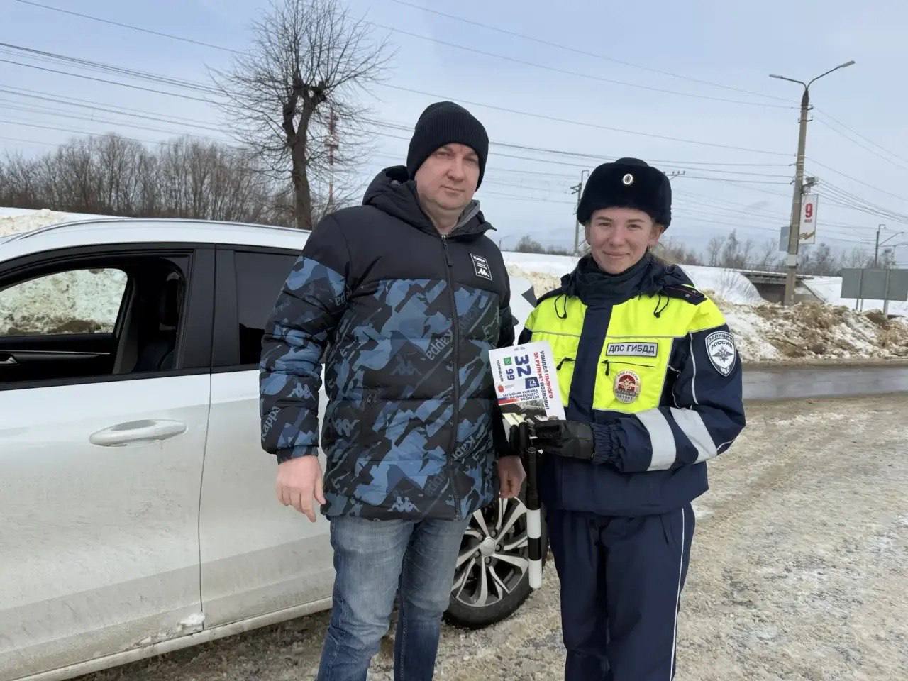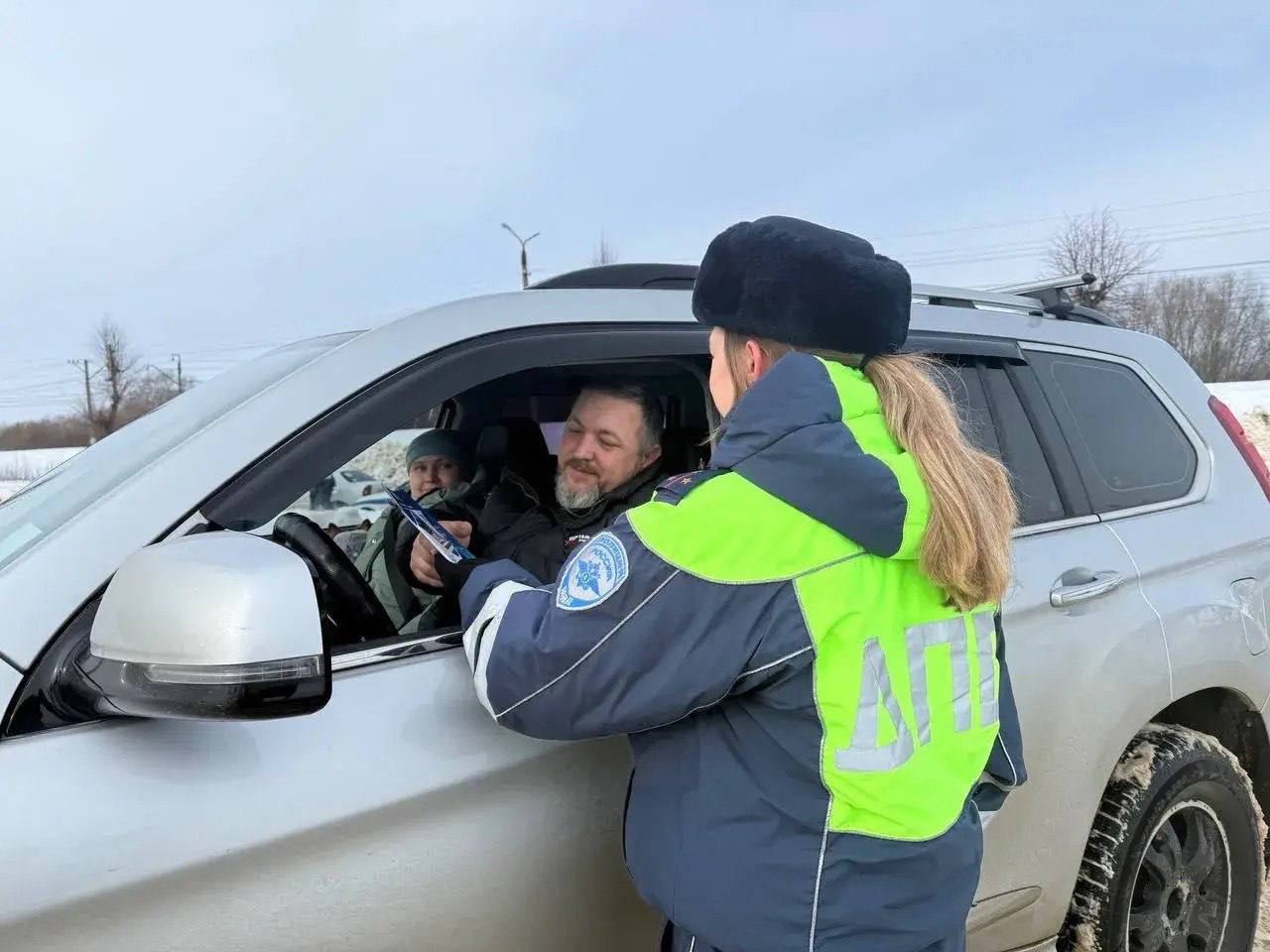 Женский экипаж Госавтоинспекции Тульской области поздравили мужчин-водителей с Днём защитника Отечества