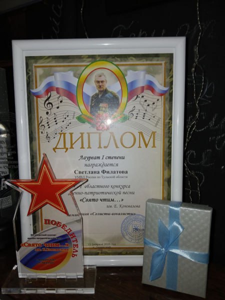 Руководство и личный состав УМВД России по Тульской области поздравляют Светлану Филатову с заслуженной наградой и желают дальнейших творческих успехов, вдохновения и новых побед, достойно прославляющих службу в органах внутренних дел и патриотические ценности Российской Федерации.