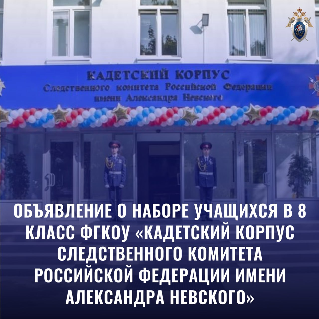 Объявление о наборе учащихся в 8 класс ФГКОУ «Кадетский корпус Следственного комитета Российской Федерации имени Александра Невского»