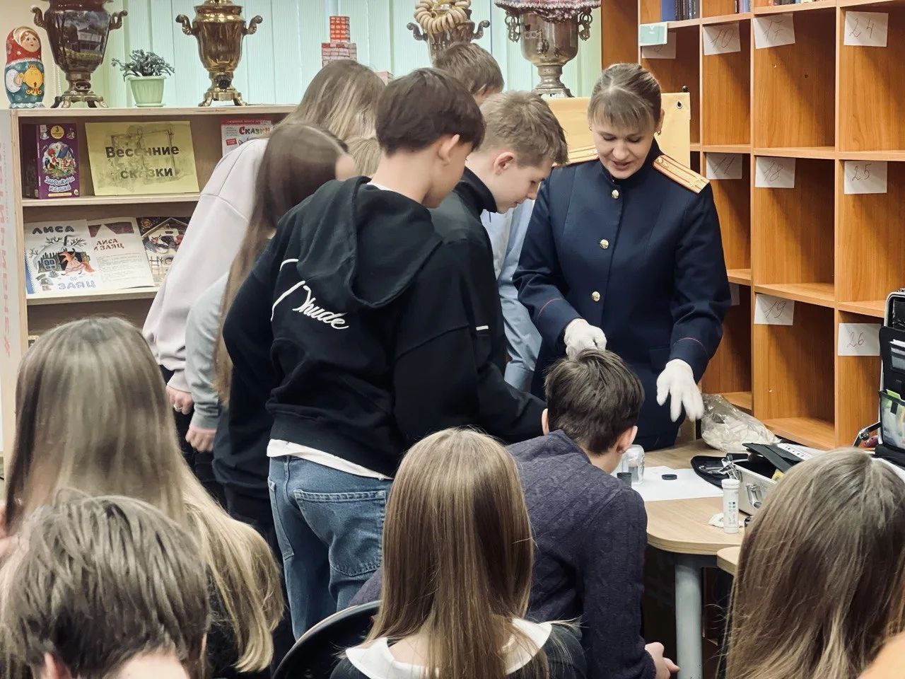 Офицеры рассказали подросткам об особенностях работы современных следователей и поделились с ними примерами раскрытия запутанных и резонансных уголовных дел. Кроме того, учащиеся смогли заглянуть в дежурный чемодан и попробовали воспользоваться некоторой криминалистической техникой и средствами. Бурную реакцию у детей вызвал процесс дактилоскопирования, ребята смогли почувствовать себя настоящими специалистами и самостоятельно изучили отпечатки пальцев друг друга.