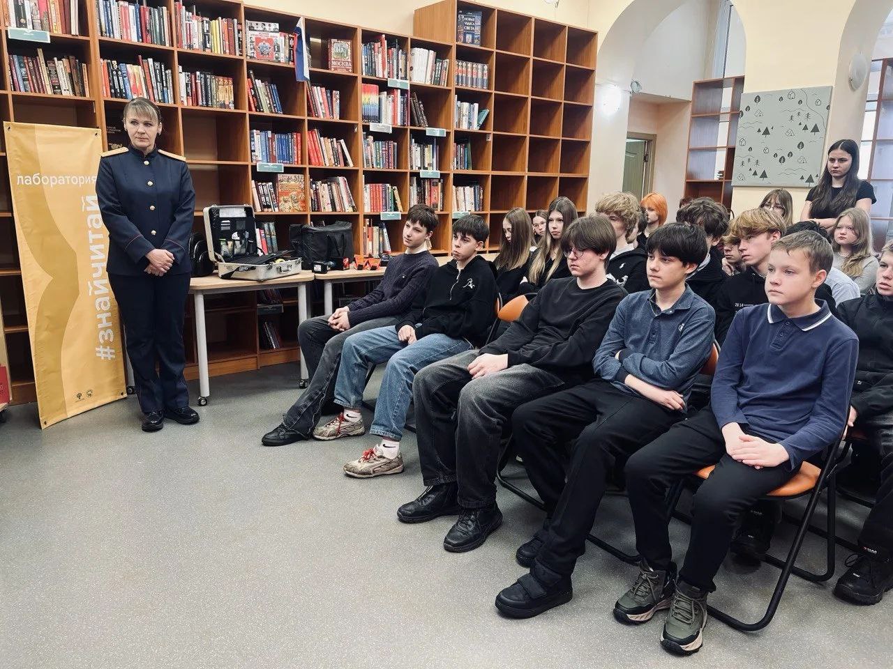 В Тульской областной детской библиотеке прошла профориентационная встреча со школьниками. В мероприятии приняли участие сотрудники СУ СК России по Тульской области, а также члены Молодёжного союза «Юный следователь».
