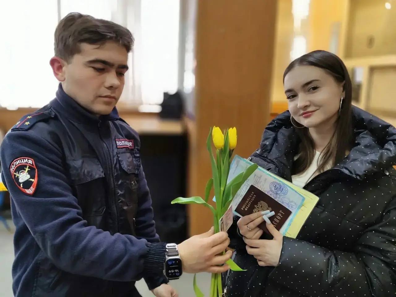 В преддверии Международного женского дня сотрудники отделения МРЭО Госавтоинспекции УМВД России по Тульской области поздравили с 8 марта участниц дорожного движения, прибывших в местное подразделение МРЭО для получения государственных услуг.