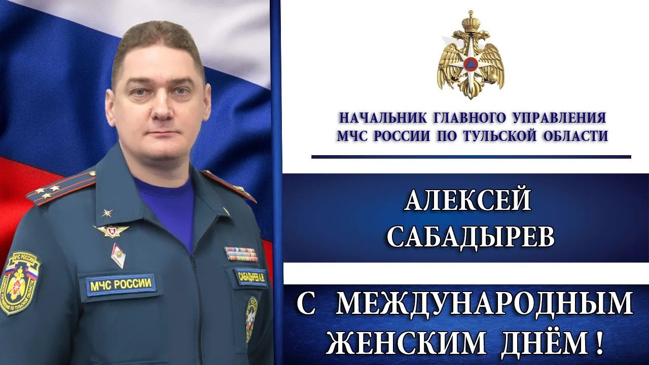 Начальник Главного управления МЧС России по Тульской области Алексей Сабадырев поздравляет сотрудниц с Международным женским днем