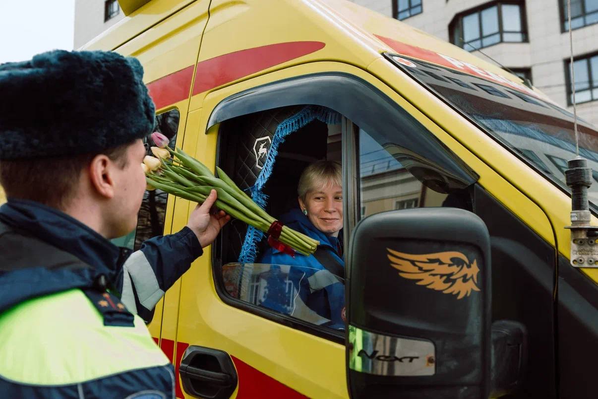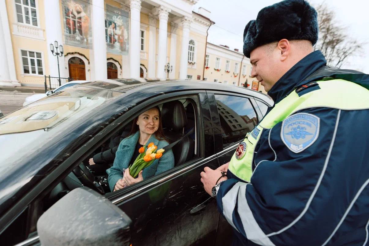 Сотрудники Госавтоинспекции города Тулы совместно с представителями автомобильной компании поздравили девушек-водителей с Международным женским днём.