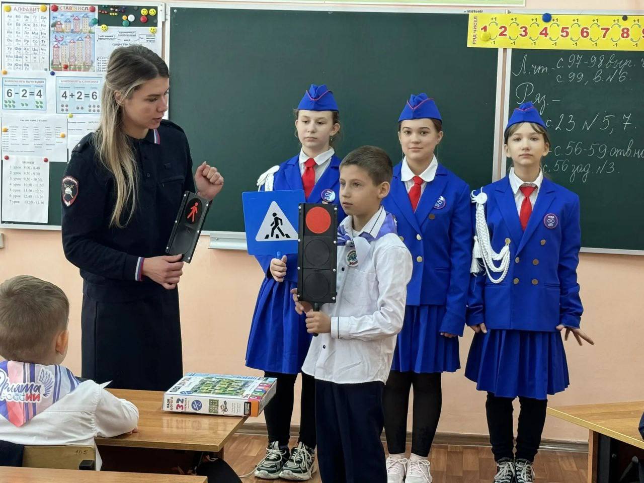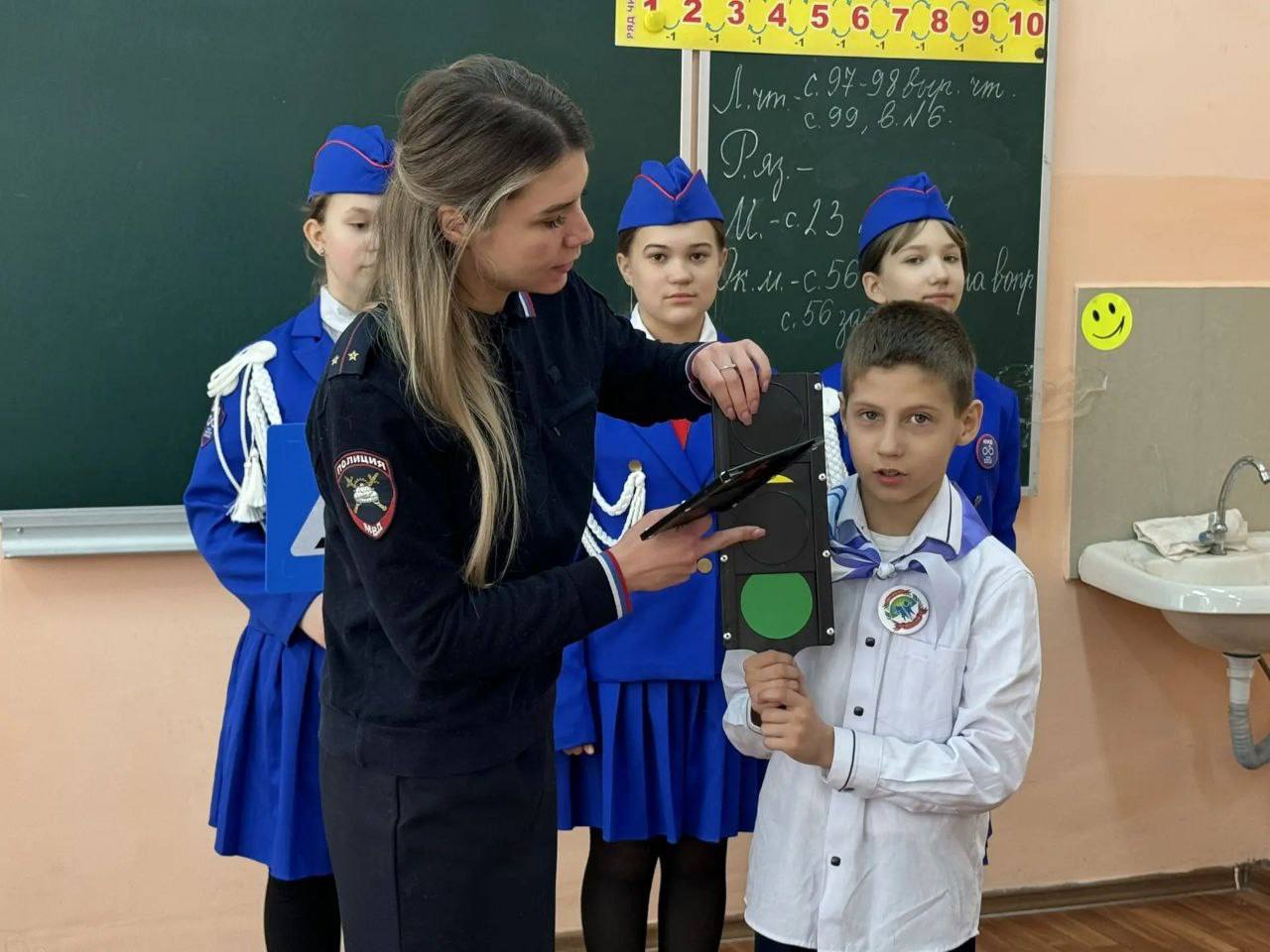 Школьники разобрали различные дорожные ситуации, в которых они могут оказаться, а также вспомнили значения дорожных знаков, виды пешеходных переходов и светофоров.