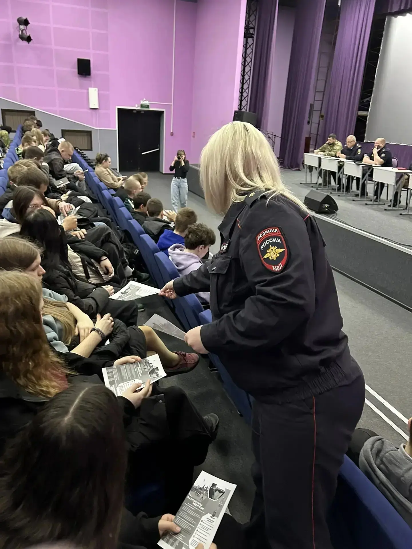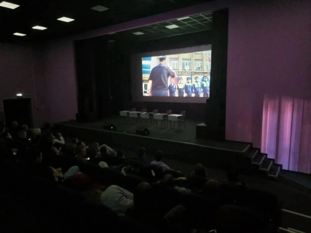 Далее учащимся был продемонстрирован документальный фильм «Наша служба. Наша жизнь», рассказывающий о реалиях современной службы и личные истории стражей порядка. Ребята смогли воочию увидеть многогранность службы в органах внутренних дел и получили объективное представление о работе тех, кто ежедневно стоит на страже закона.