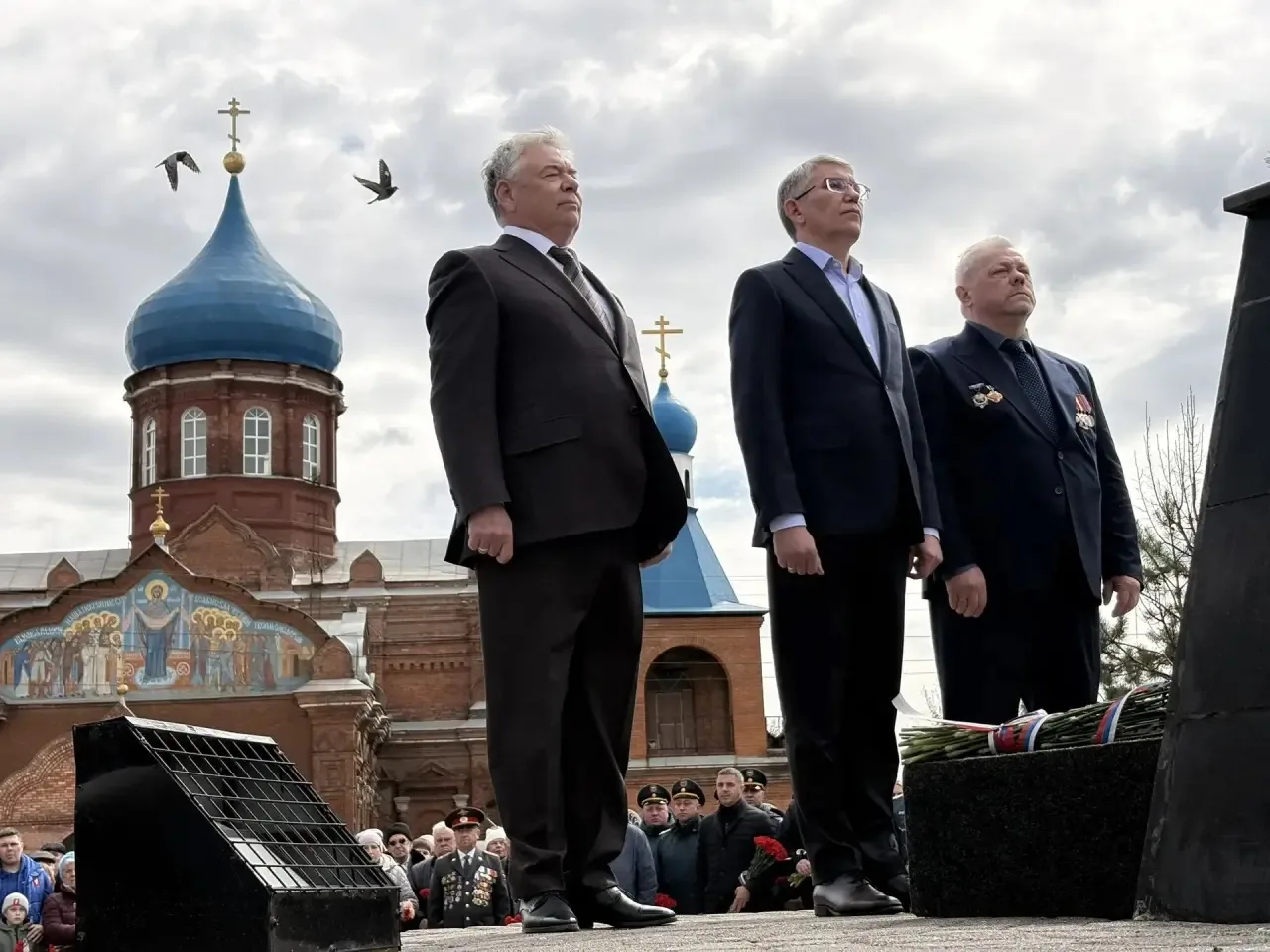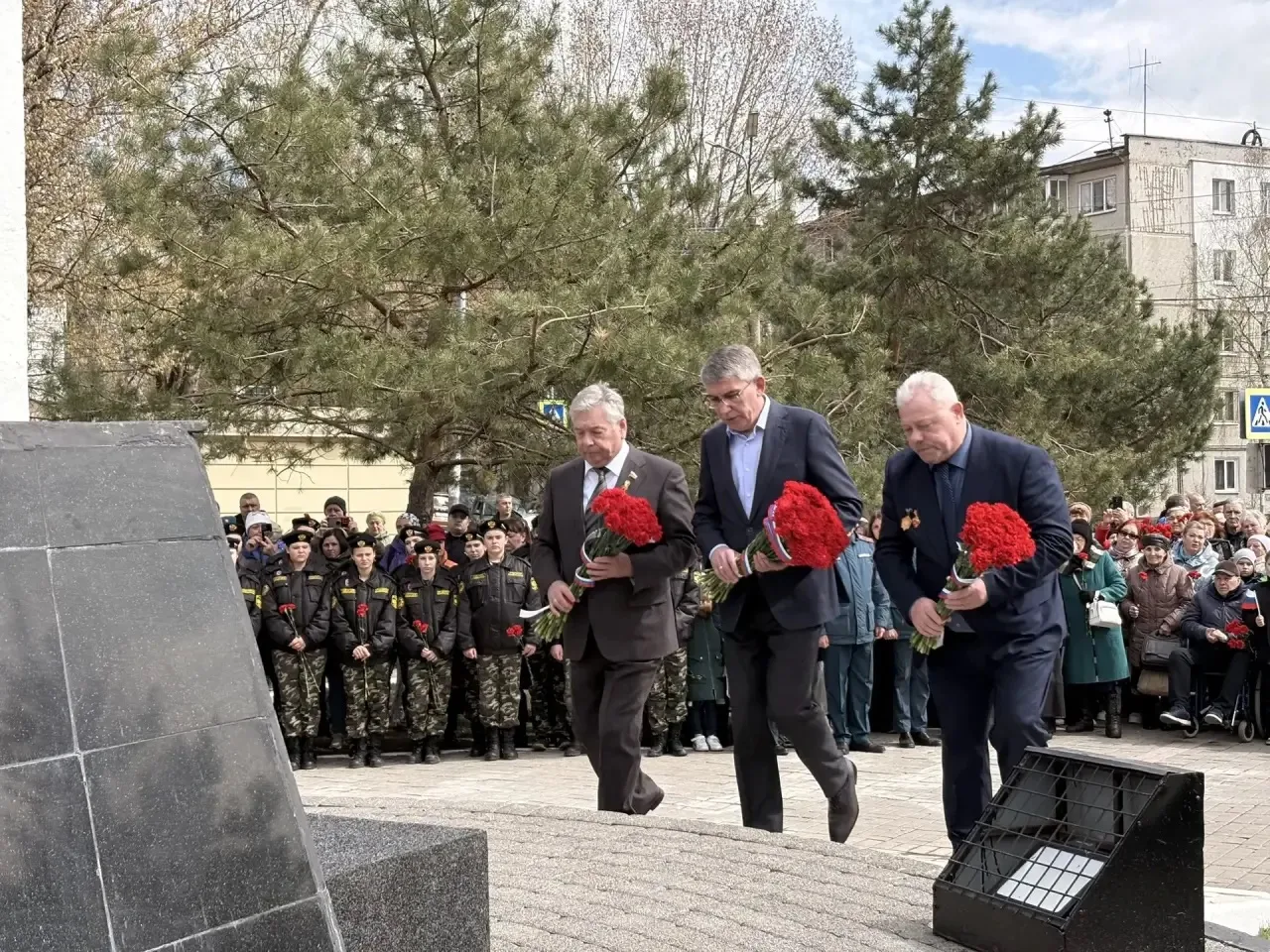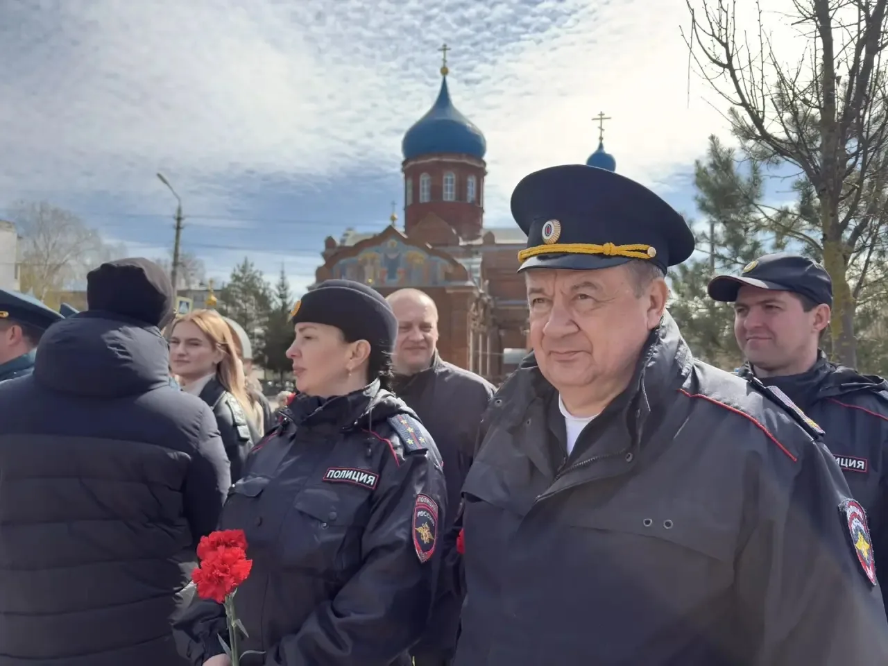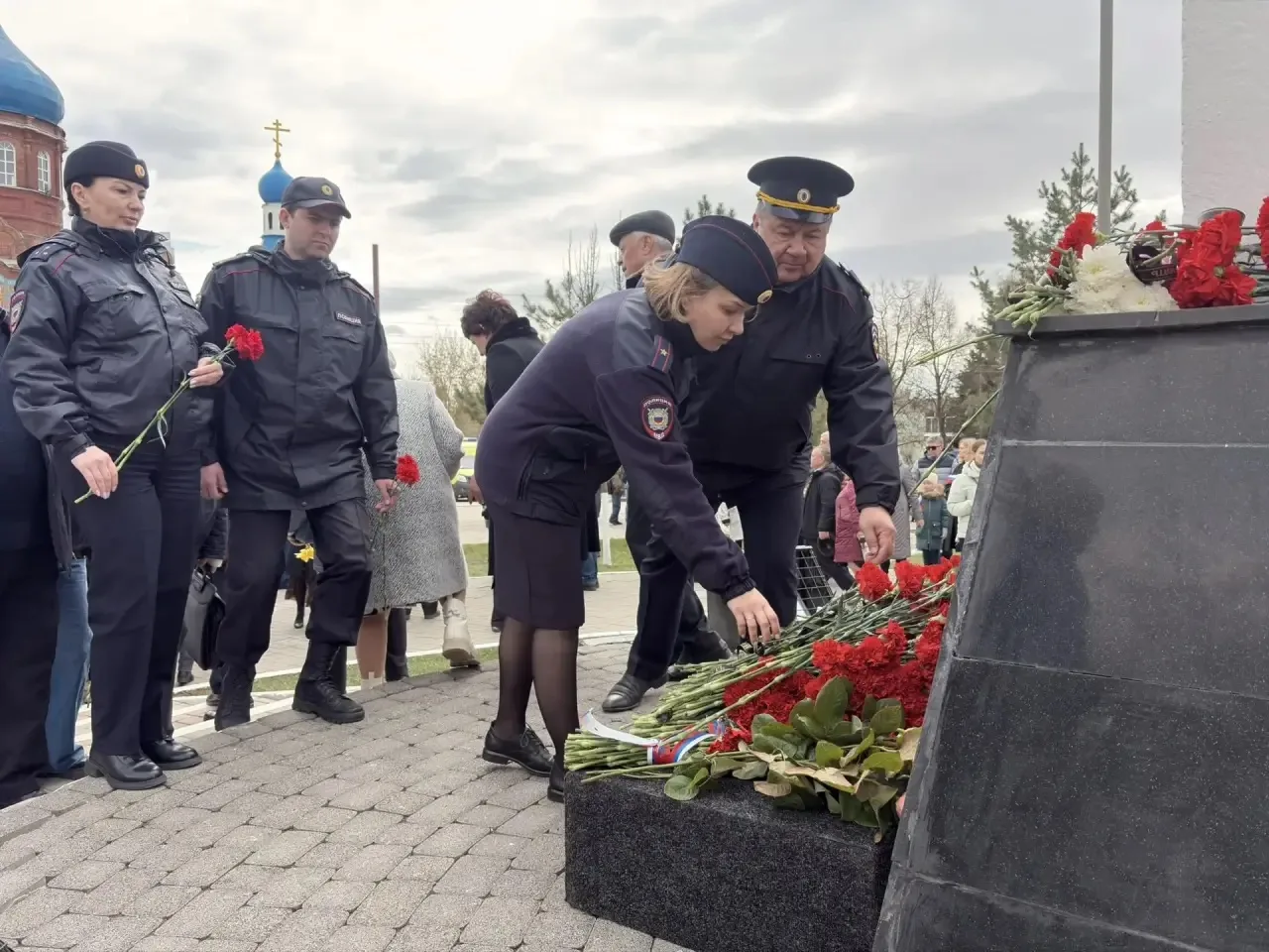 Под звуки военного оркестра участники церемонии, включая руководство областного УМВД и Правительства региона, возложили живые цветы к подножию памятника.
