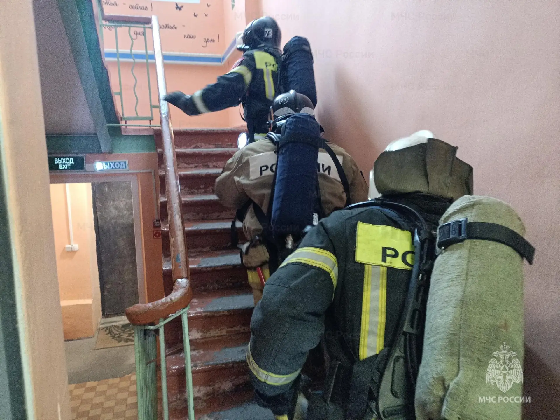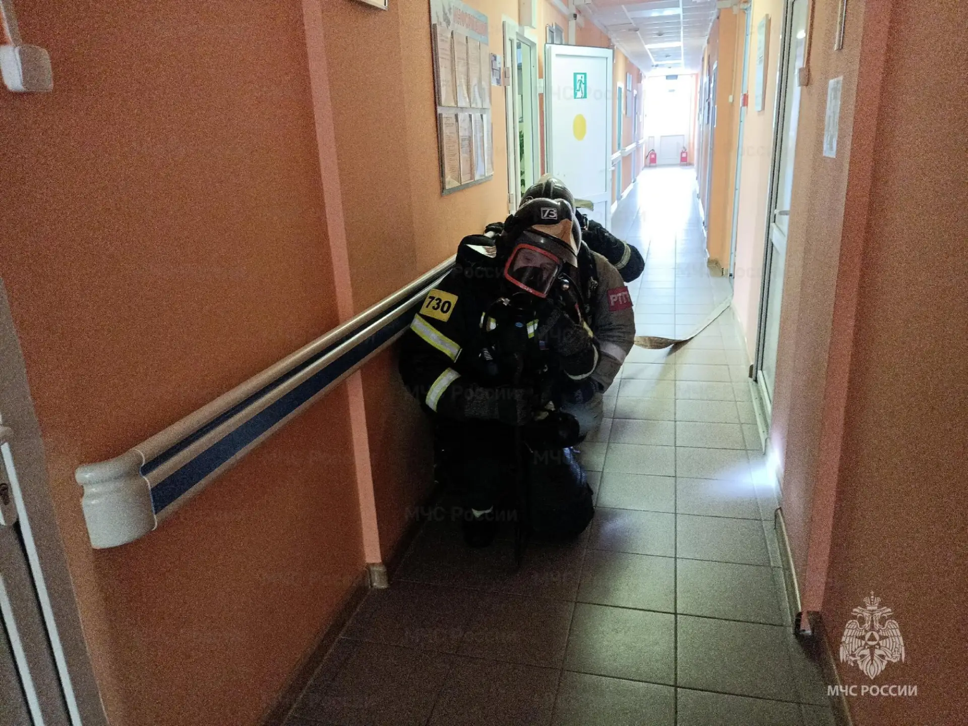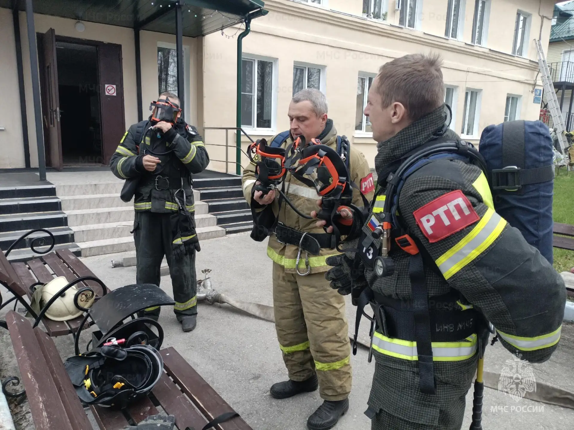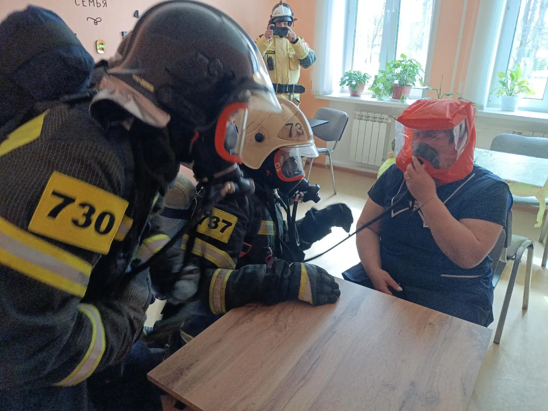 Спустя несколько минут на место «происшествия» прибыли первые пожарные расчеты и приступили к разведке помещений. В одной из комнат огнеборцы обнаружили «пострадавшего». Звеном газодымозащитной службы была произведена эвакуация человека на свежий воздух и оказана первая помощь. Вскоре пожарные обнаружили и полностью ликвидировали условное возгорание.