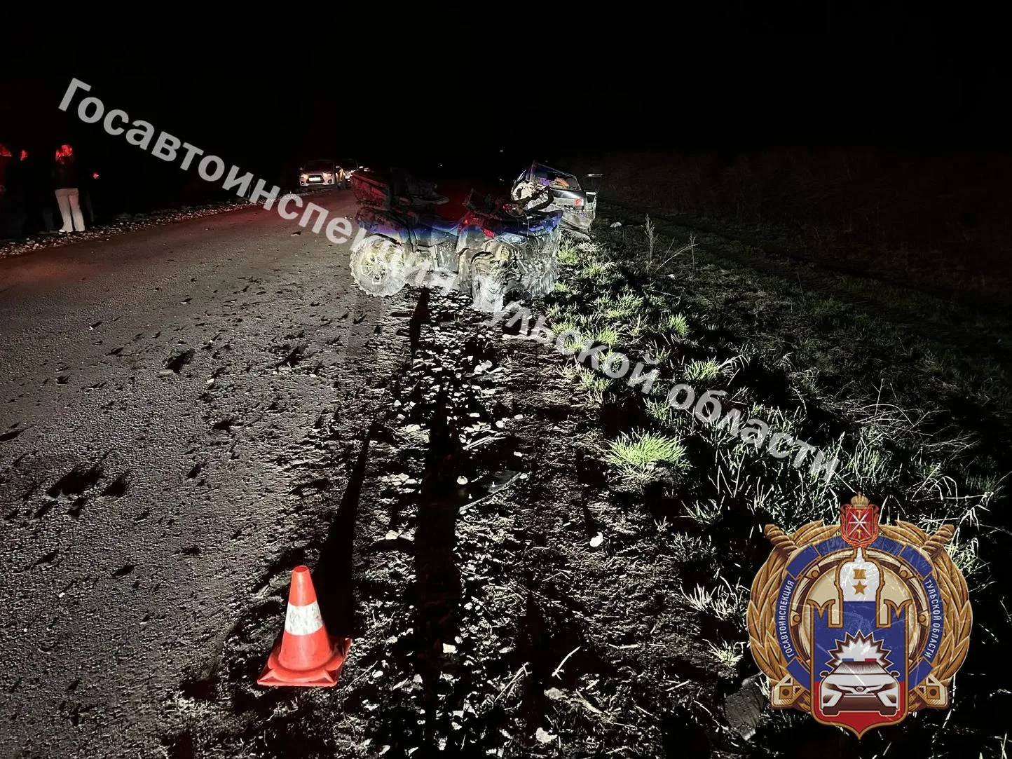 25 апреля в 21:02 на 8-ом километре автодороги Орел-Ефремов-Кочкино Ефремовского района Тульской области мужчина 1996 года рождения, не имея права управления транспортным средством соответствующей категории, управляя квадроциклом «CFMOTO CFORCE600 EPS», по предварительной информации, не справился с управлением транспортным средством и совершил наезд на стоящий автомобиль «ВАЗ 21104», под управлением мужчины 1984 года рождения. В результате ДТП различные травмы получили водитель, после оказания медицинской помощи отпущен и несовершеннолетний пассажир квадроцикла – девочка 2013 года рождения, госпитализирована в медицинское учреждение. В момент ДТП водитель и пассажир квадроцикла находились без спецэкипировки, в шлемах.