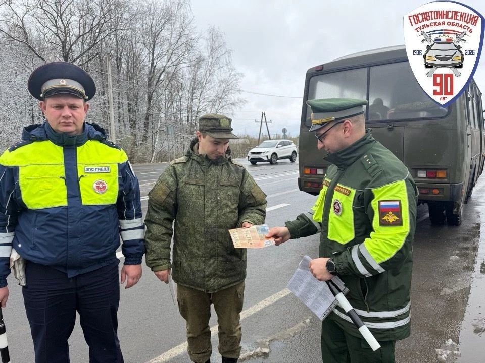 27 апреля 2026 г. сотрудники ОБ ДПС Госавтоинспекции по Тульской области совместно с 71-й военной автомобильной инспекцией (территориальной) провели профилактическую акцию «Ремень безопасности».