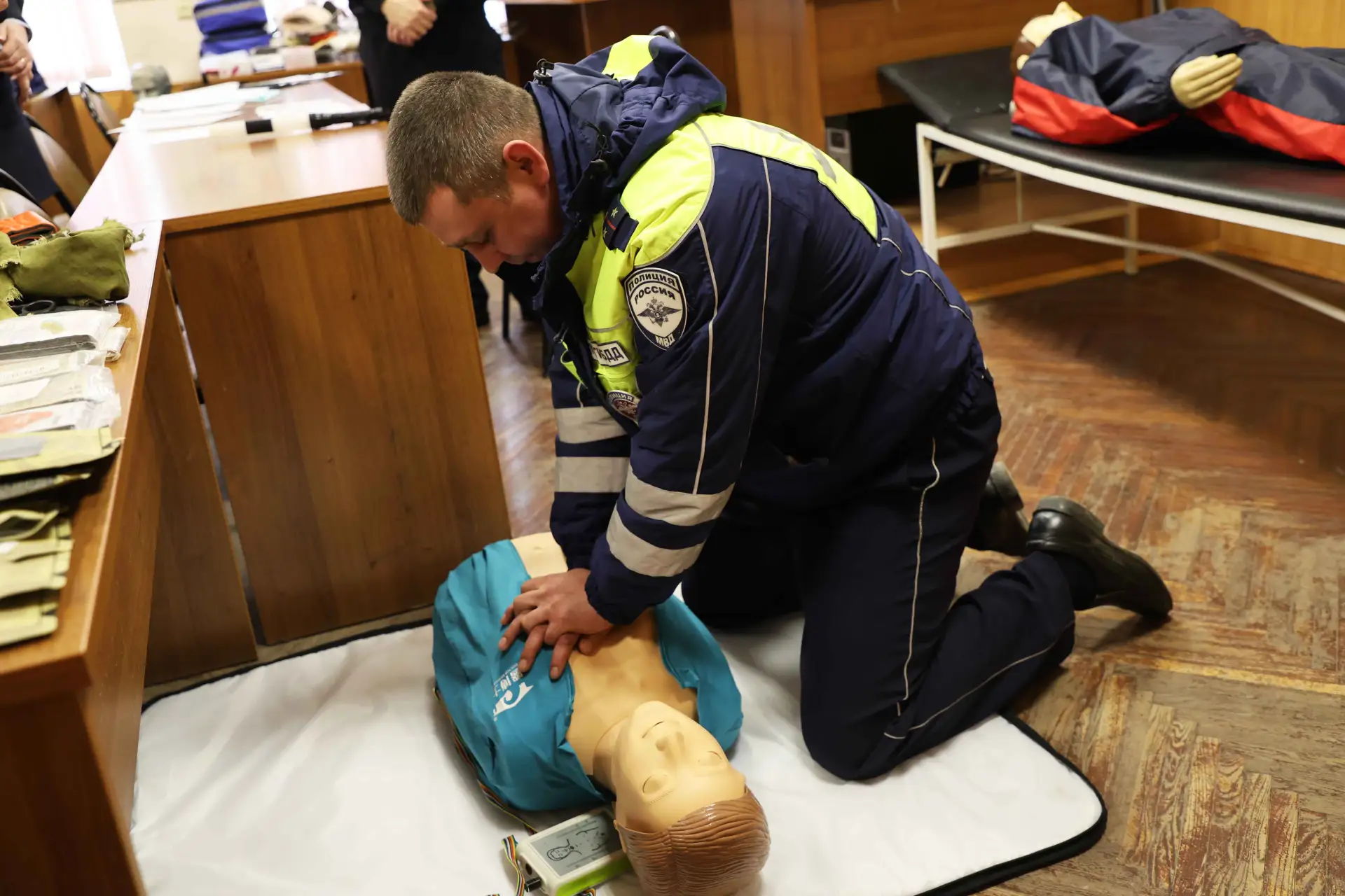 Особое внимание было приковано к самому динамичному испытанию - «Служебному триатлону». Эта дисциплина объединила в себе преодоление дистанции на транспортном средстве, скоростную стрельбу из табельного оружия, практические навыки оказания первой помощи пострадавшим в ДТП и решение сложных теоретических задач.