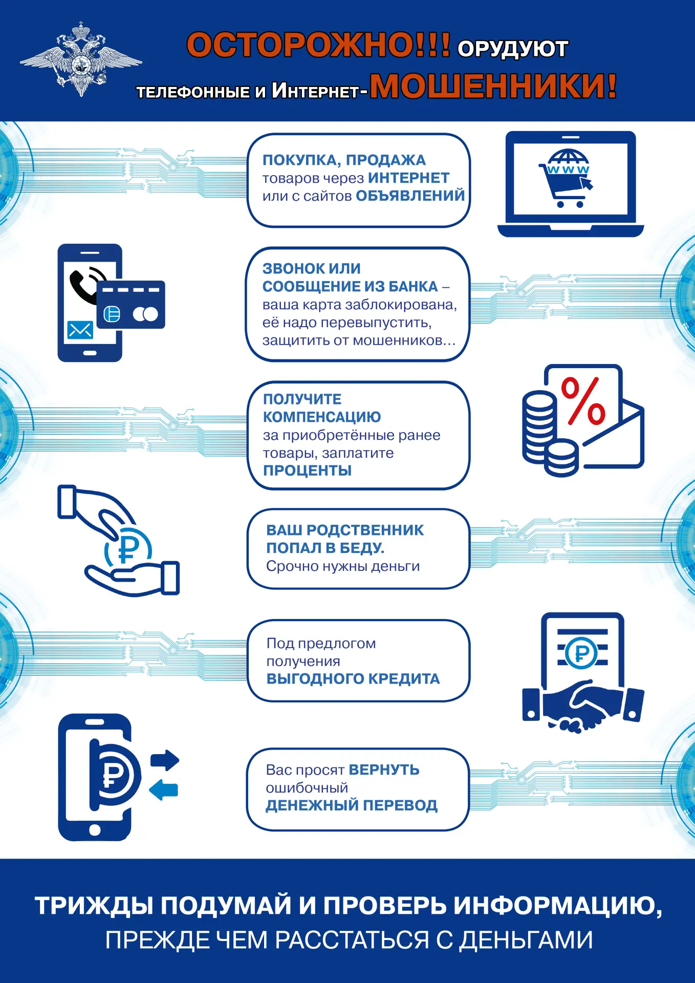 Проведите беседы со своими пожилыми родственниками. Объясните им, что нельзя передавать деньги незнакомым людям, кем бы они ни представились.