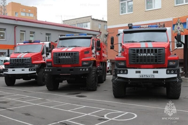Помимо этого, в торжественной обстановке состоялось вручение ключей от новой пожарной техники. Парк МЧС России и областной пожарной охраны пополнили 2 штабных автомобиля и 4 автоцистерны на базе КАМАЗ и УРАЛ. Техника уже сегодня будет направлена в подразделения пожарной охраны Тулы, Киреевского и Чернского районов, в скором времени будет включена в расчеты и поставлена на боевое дежурство. Полученные пожарные автомобили обладают высокой проходимостью, что способствует сокращению времени прибытия подразделения на место происшествия в труднодоступную местность. Новая техника станет отличным помощником для тульских огнеборцев в деле по спасению жизни людей.