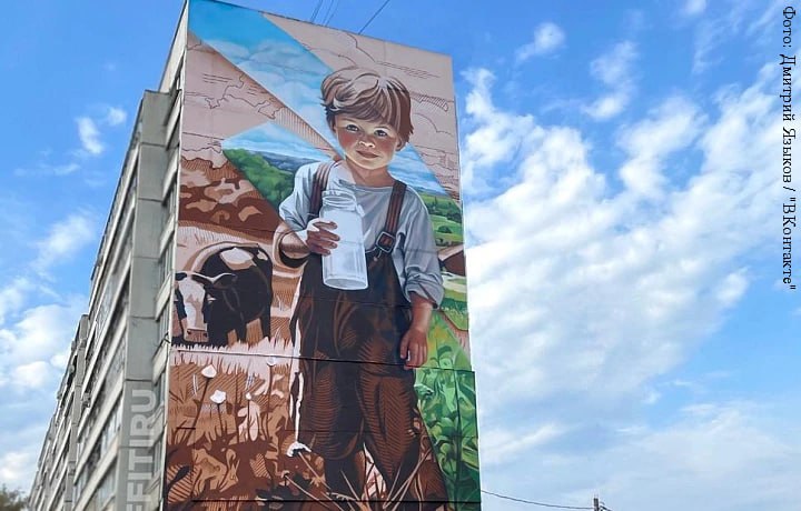 На ул. Марата появился мурал с мальчиком и банкой молока, созданный тульским художником
