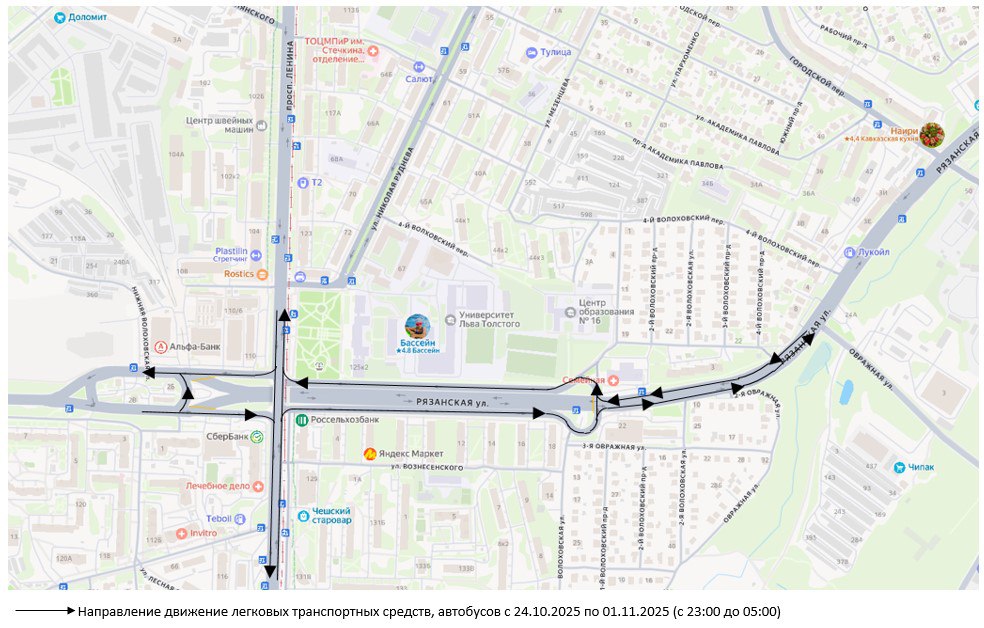 Временно ограничат движение транспорта с 24 октября по 1 ноября (с 23:00 до 05:00) на участке под Орловским путепроводом.