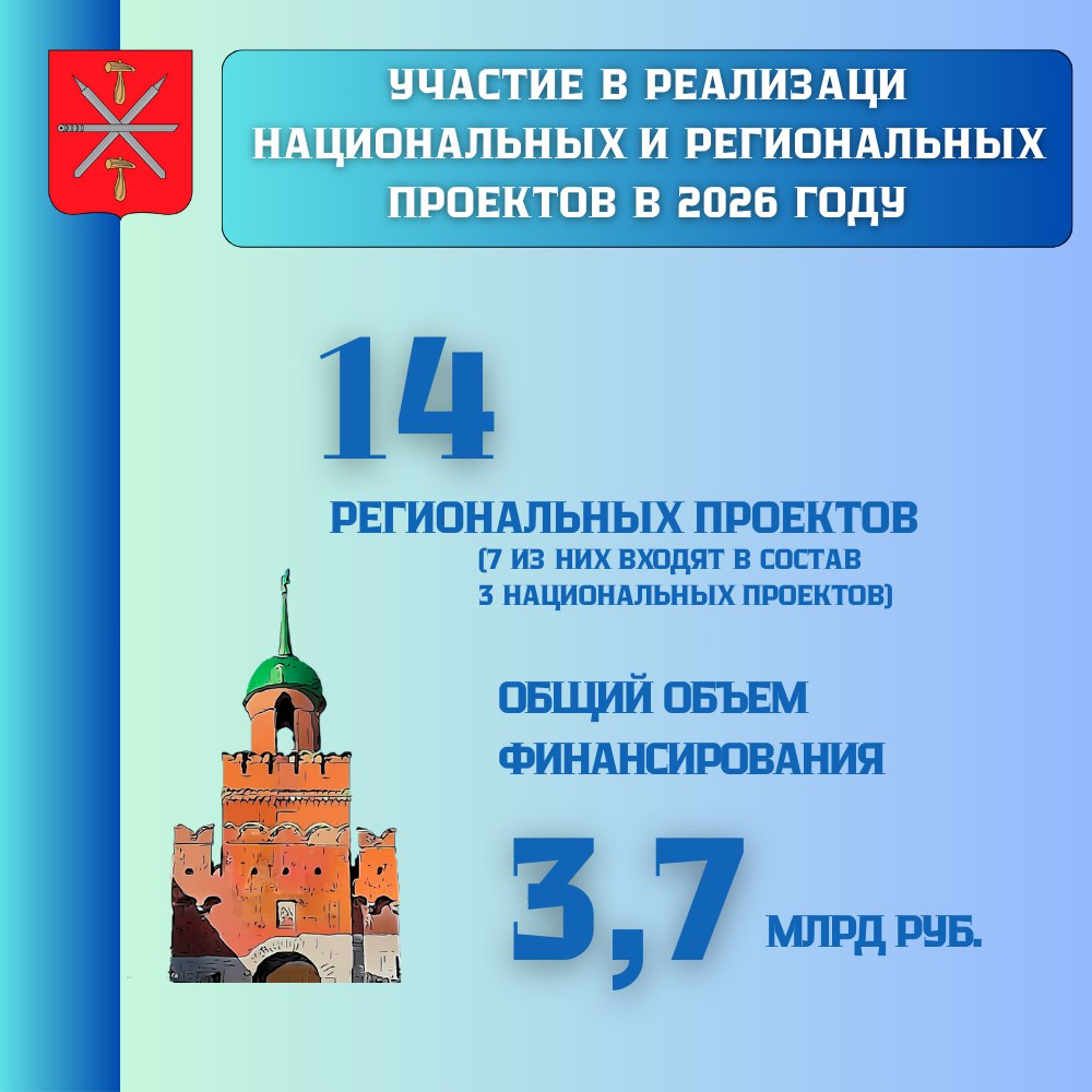 В 2026 году Тула будет участвовать в реализации 14 региональных проектов, 7 из которых входят в состав национальных проектов «Инфраструктура для жизни», «Молодежь и дети», «Семья».