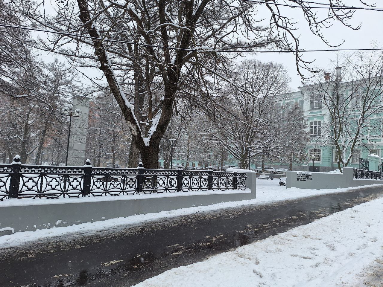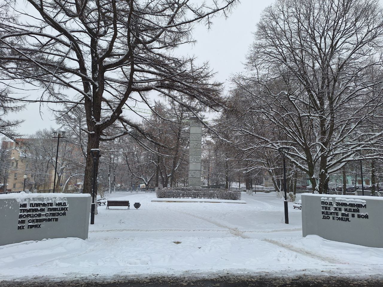 Выполнена реконструкция подпорной стены со стороны пр. Ленина. На барельеф вернули строки стихотворения Лиодора Пальмина. Также здесь благоустроены тротуар и газон.