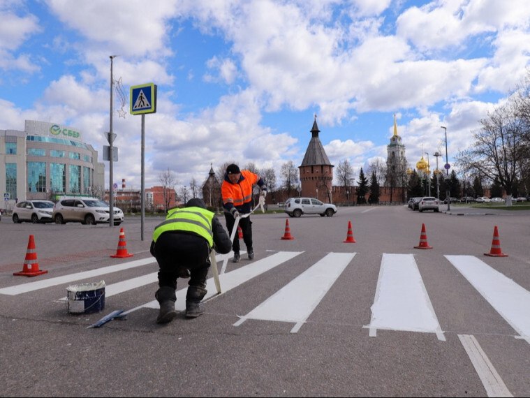 Работа по обновлению дорожной разметки продолжится на пр. Ленина и улицах Октябрьской, Ложевой, Чмутова, Кутузова, а также Одоевском, Щекинском и Веневском шоссе.