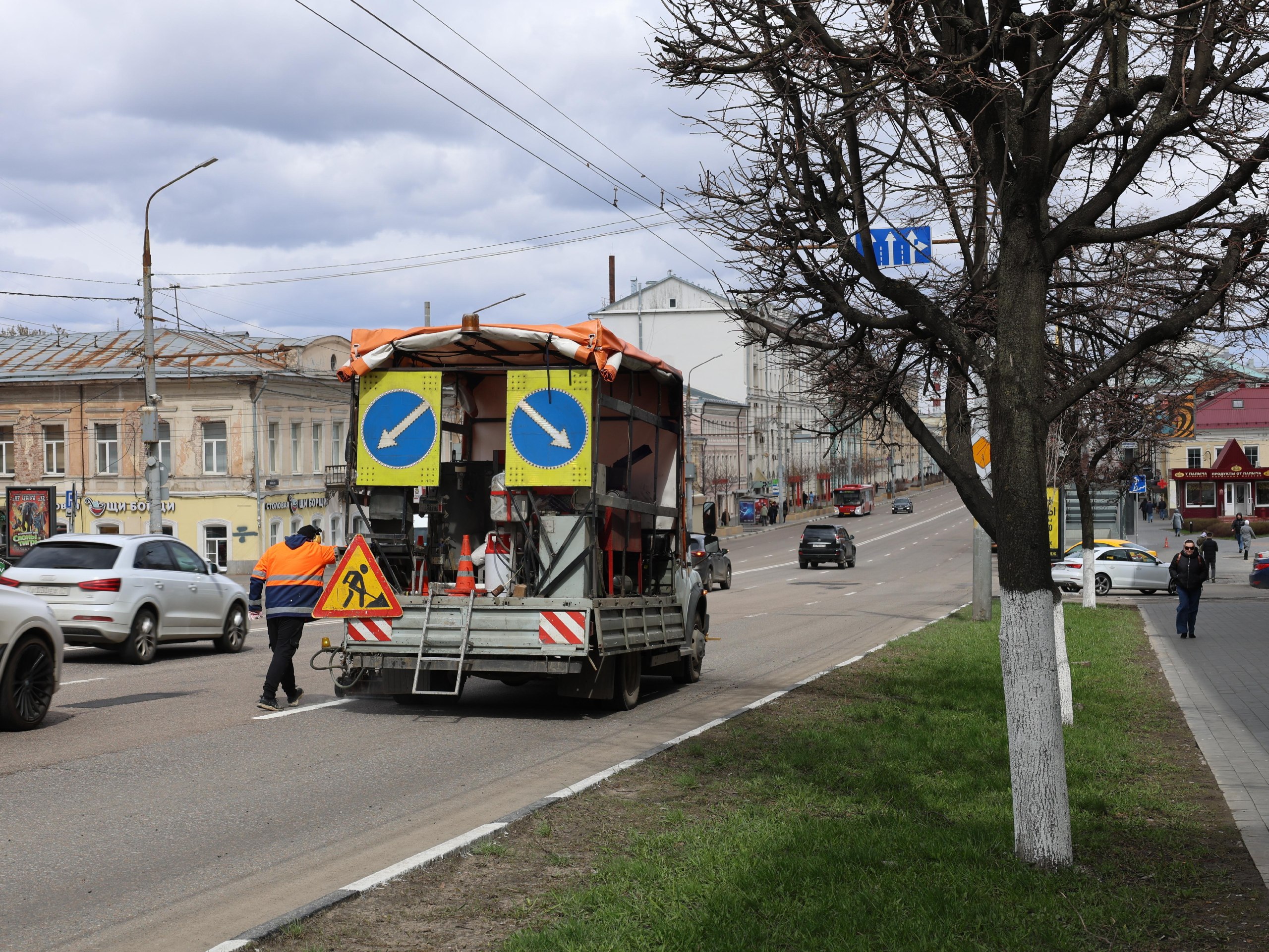 В настоящее время подрядная организация обновила продольную дорожную разметку на улицах Советской, Менделеевской, Союзной, Благовещенской, Дзержинского и Никитской, на участке от ул. Менделеевской до ул. Советской по ул. Тургеневской, на участке от ул. Советской до ул. Менделеевской по ул. Революции, в Садовом и Благовещенском переулках, на Чапаевском проезде, пешеходных переходах на ул. Менделеевской.