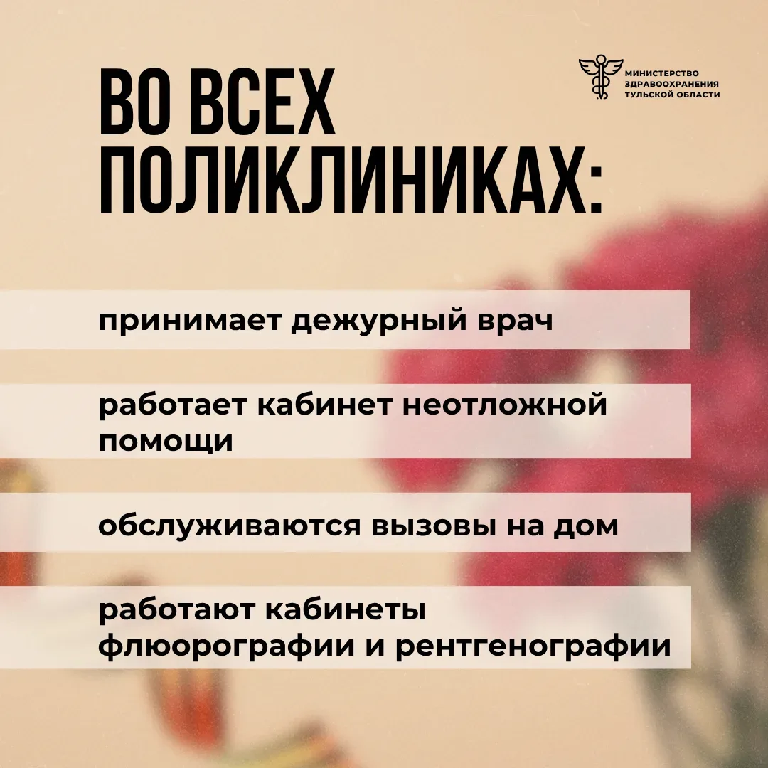 Пока жители Тульской области отдыхают, поликлиники, травмпункты, стоматологии и контактные центры работают. Сохраните этот пост на всякий случай