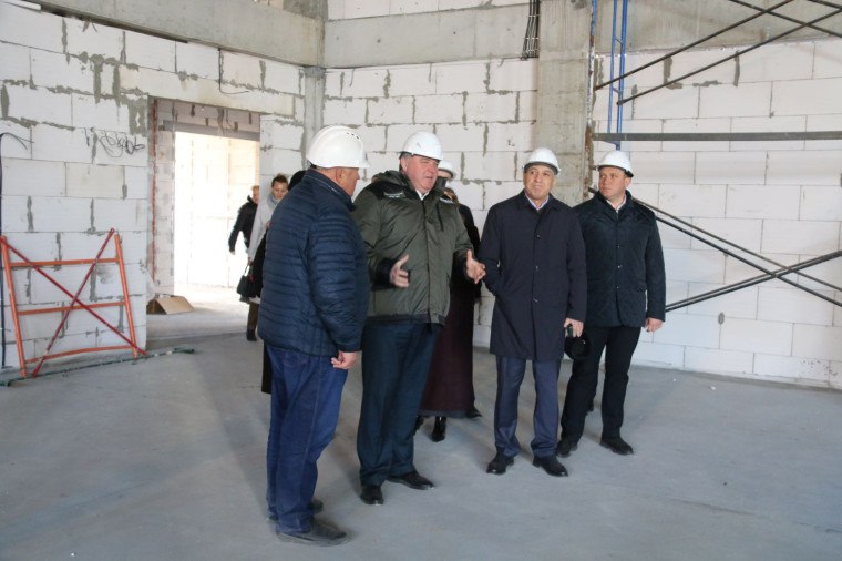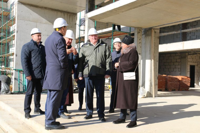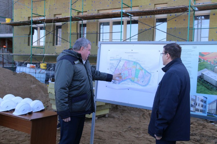 Посетил стройплощадку. Пообщался с подрядчиком. Школу на 1100 мест возводим по нацпроекту «Молодежь и дети».