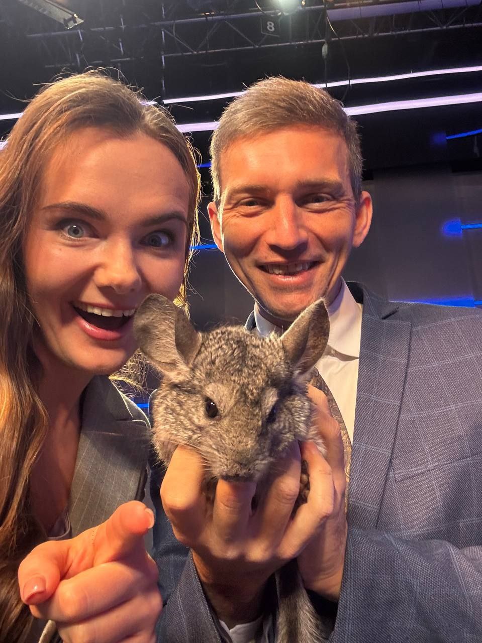 Шиншилла Шустрик в утренней студии ВЕСТЕЙ взбодрил наших ведущих Алексея Ерёмина и Анастасию Октябрьскую.