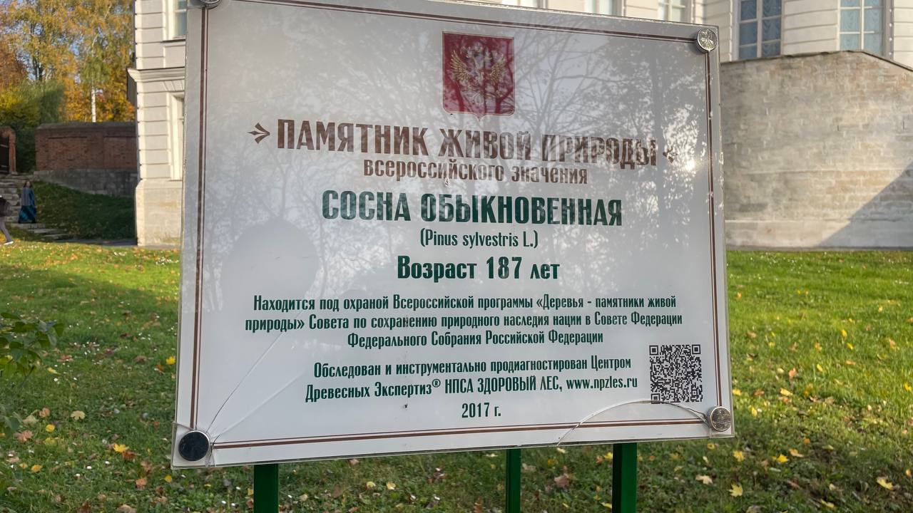 Сосна в Богородицком парке получила табличку с охранным статусом.