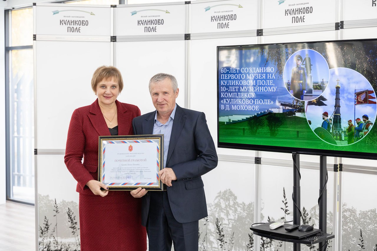 В честь юбилея сотрудникам музея вручили региональные награды. В церемонии награждения принимала участие заместитель председателя Правительства — министр культуры и туризма Тульской области Ольга Гремякова.