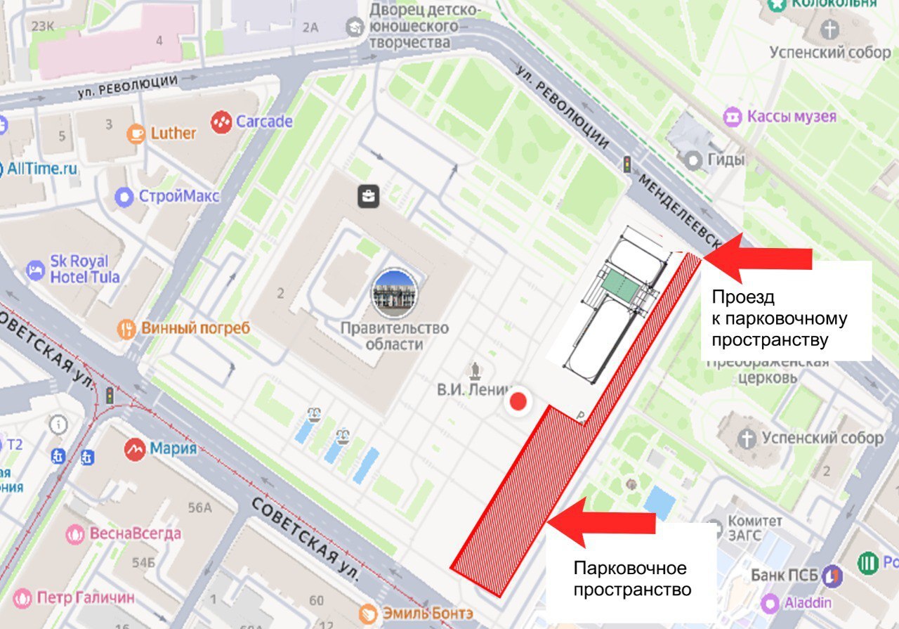Проезд на парковку на площади Ленина будет осуществляться со стороны ул. Менделеевской.