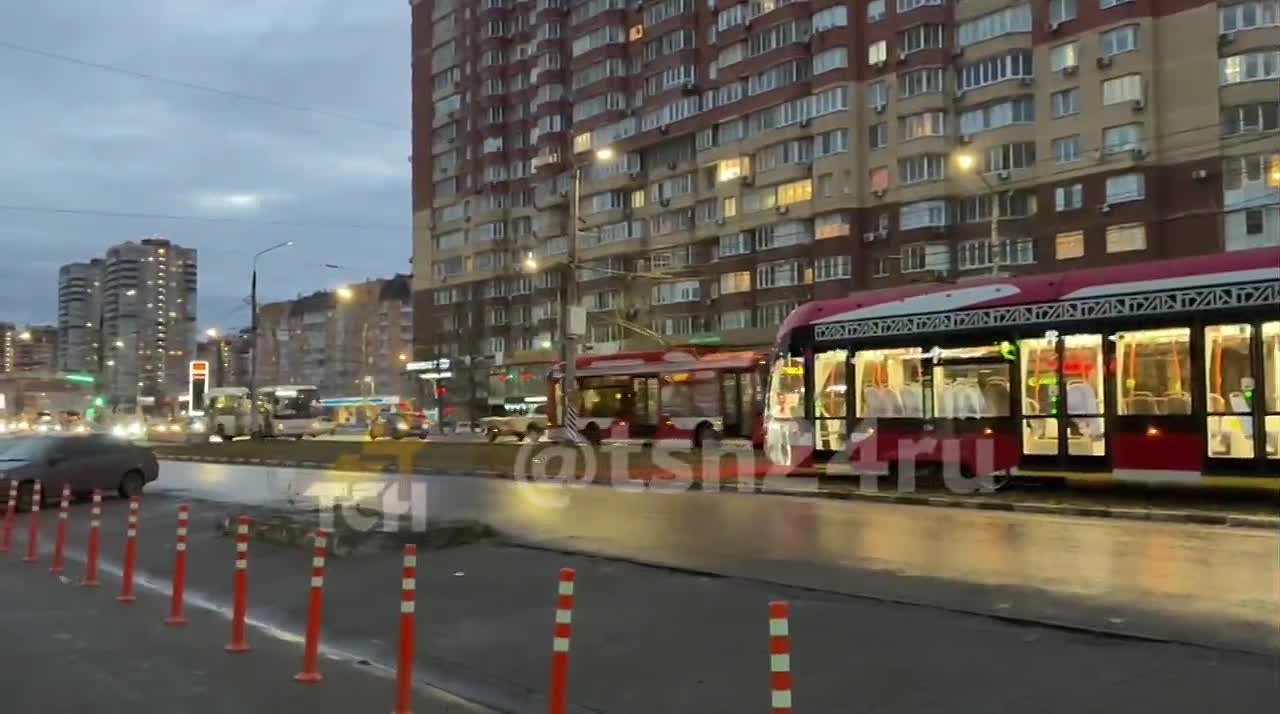 Из-за этого затруднено трамвайное движение в обе стороны.