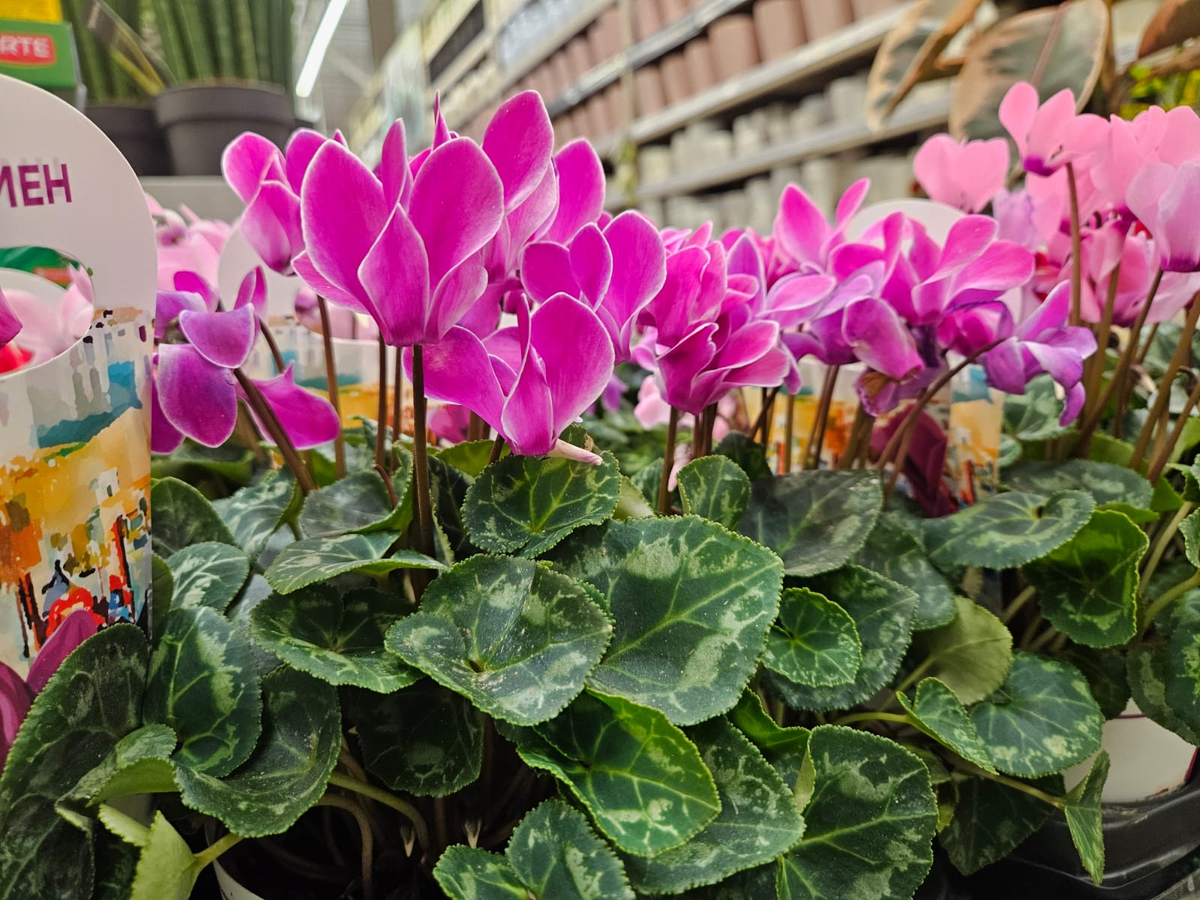 Цикламены за свою красоту и цветение заслуженно любимы. Несмотря на то что они позиционируются как сезонные растения, круглый год эти красавцы радуют покупателей своей яркой зеленью и цветами. Главный алгоритм успеха для цикламенов заключается в их способности адаптироваться к условиям торговли. Магазинные условия часто идеальны для их роста, а это дает возможность любителям без особых усилий иметь их дома.